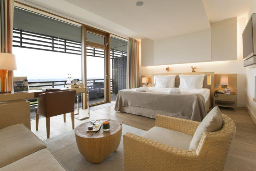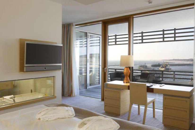 - В отеле 79 номеров различных категорий, включая Guest Room и Suite. Номера сочетают первоклассный комфорт и лаконичный современный дизайн с отделкой из натуральных материалов, а с балконов открывается потрясающий вид на Северное море, дюны, маяк, гавань Хёрнума и живописное гольф-поле