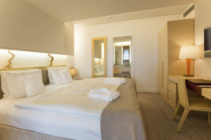 - 42-55 м2. Состоит из спальни, гостиной с рабочей зоной и зоной отдыха с диваном, который может служить дополнительным спальным местом, мини-кухни с обеденной зоной (в номерах площадью 55 м2), гардеробной, ванной комнаты с ванной и ливневым душем, большого балкона с зоной отдыха и видом на море и гольф-поле или фронтальным видом на море. Номер может соединяться с соседними номерами Single Room и Double Room.