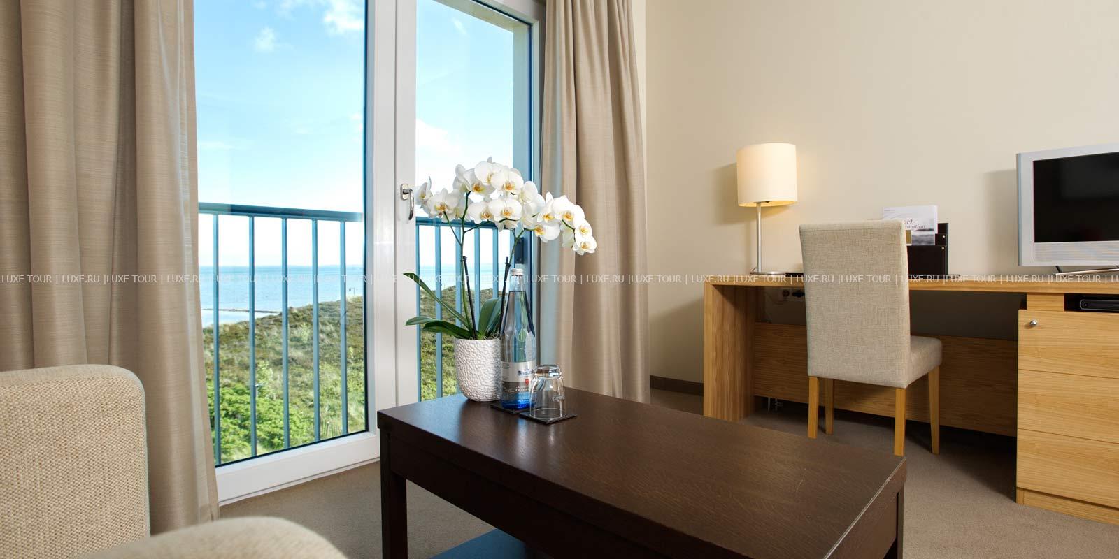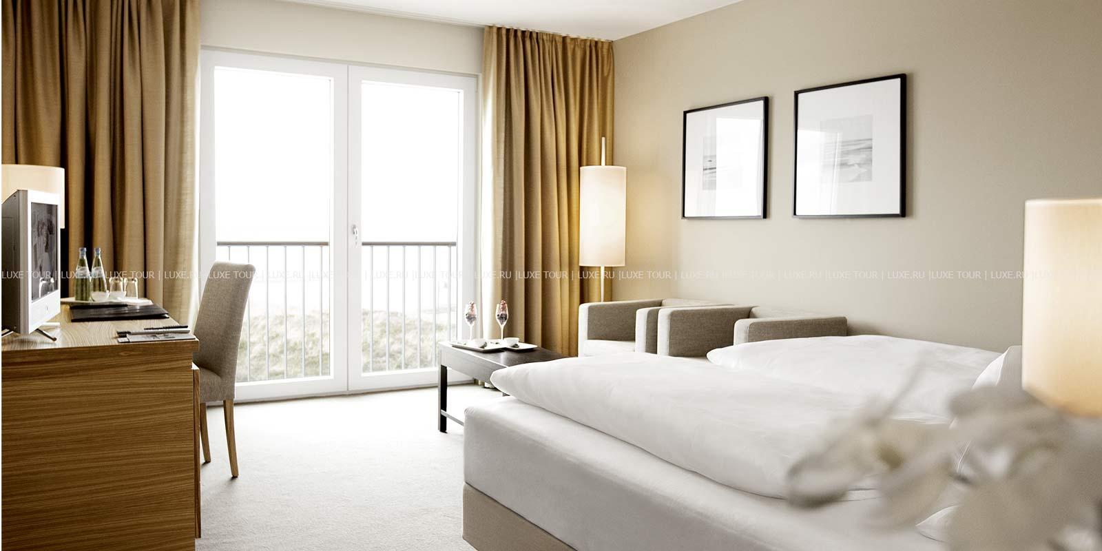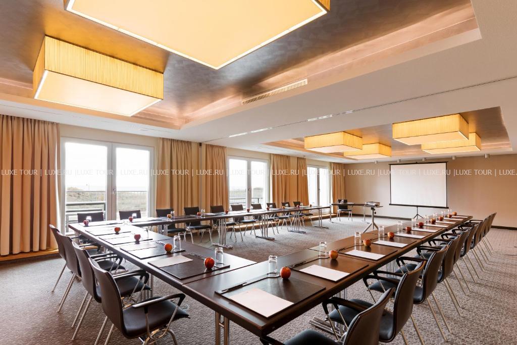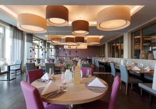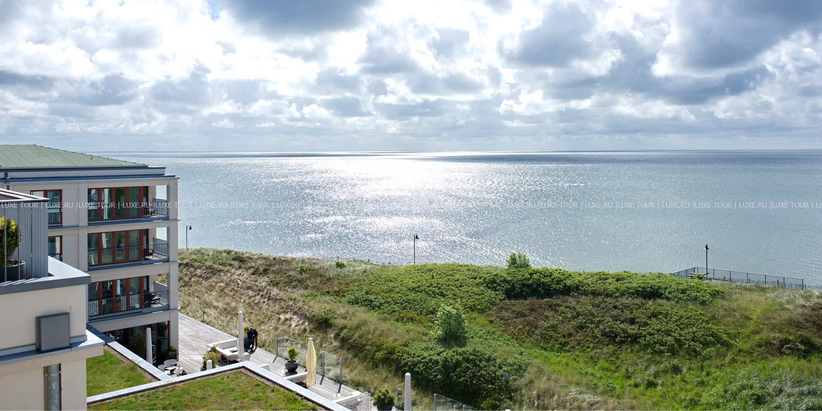 - Ресторан Dünenrestaurant с просторным залом и большой террасой с видом на море предлагает разнообразие блюд интернациональной кухни.