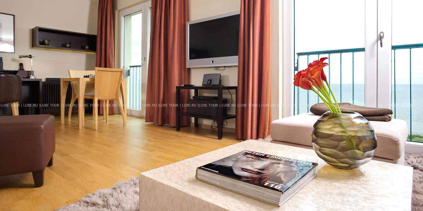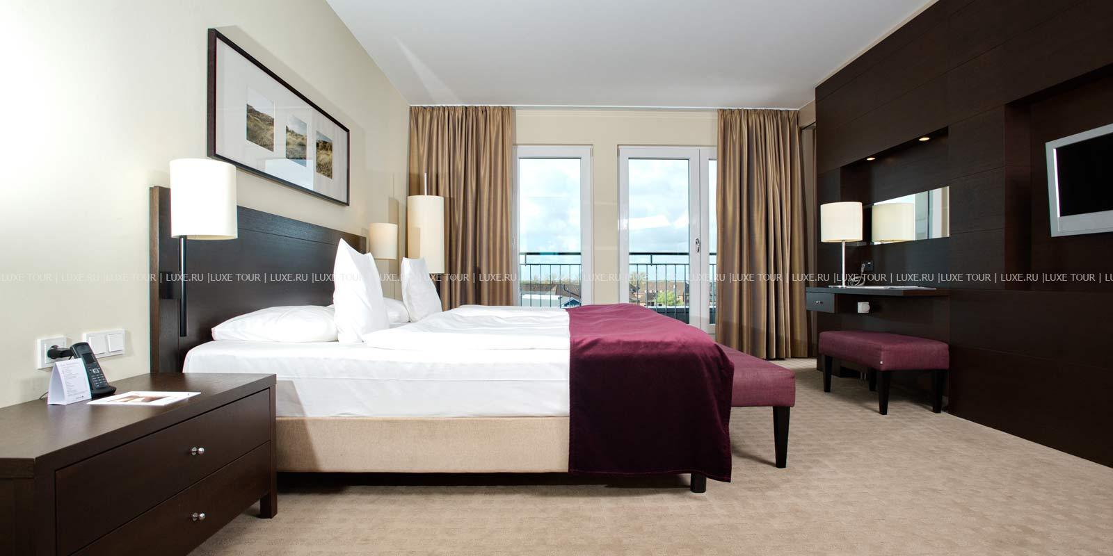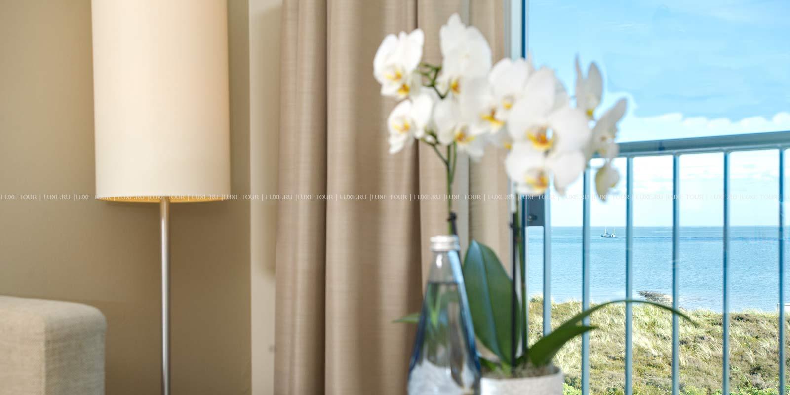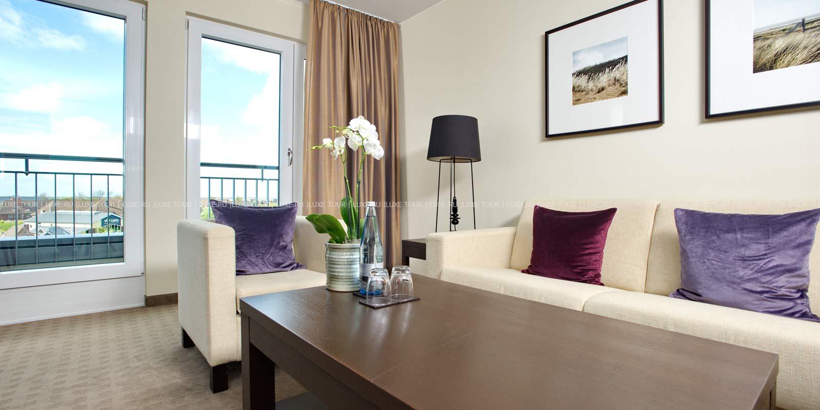 - Ресторан Dünenrestaurant с просторным залом и большой террасой с видом на море предлагает разнообразие блюд интернациональной кухни.