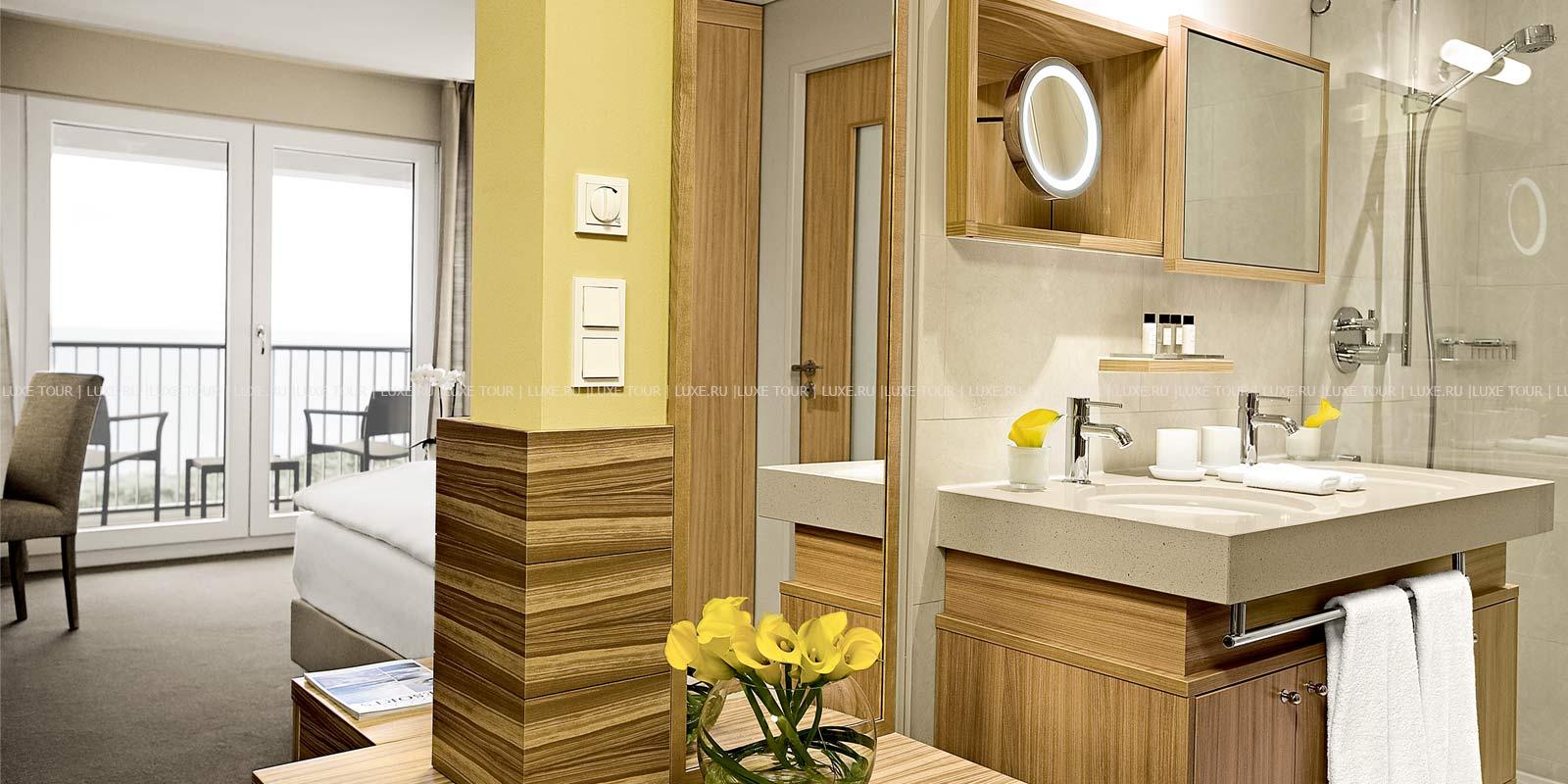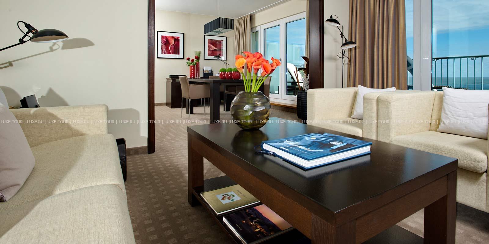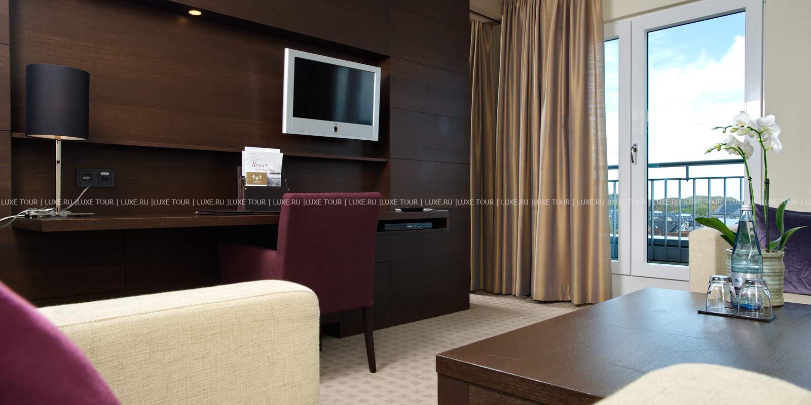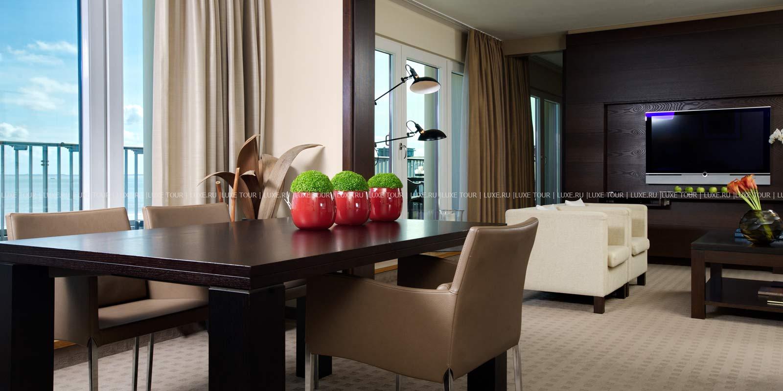 - Ресторан Dünenrestaurant с просторным залом и большой террасой с видом на море предлагает разнообразие блюд интернациональной кухни.