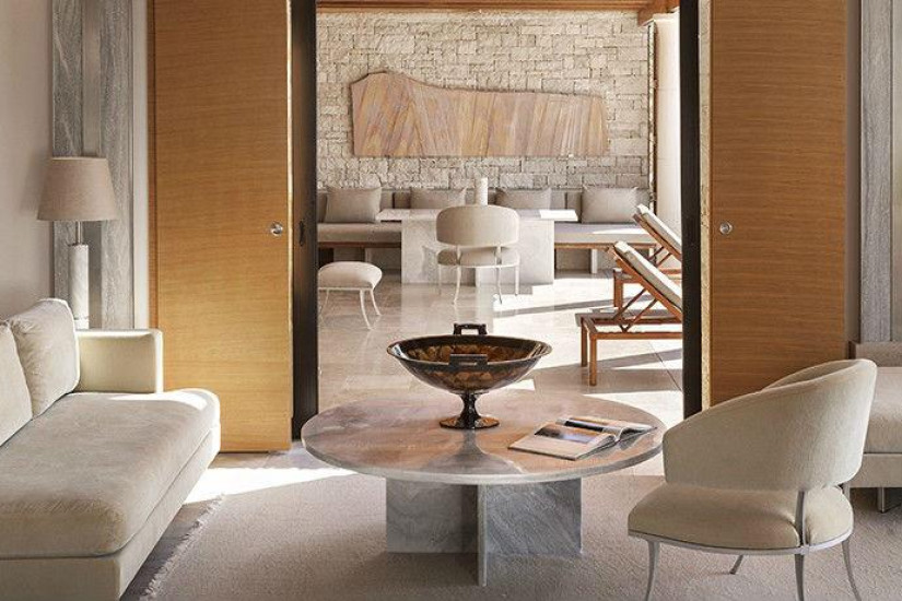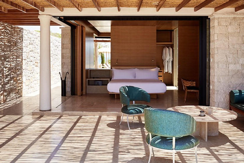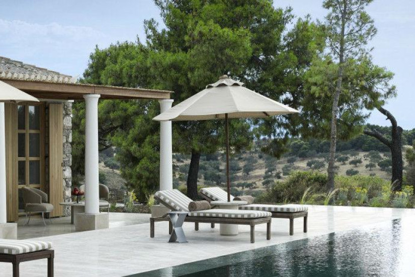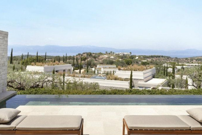 - состоит из четырех спален с зоной отдыха, просторной общей гостиной и обеденной зоны, четырех ванных комнат, кухни, кабинета и комнаты для спа-процедур, просторного внутреннего двора с террасой и зоной отдыха и 20-метровым бассейном. Гостям виллы предлагаются услуги шеф-повара и дворецкого. Вилла, окруженная оливковой рощей, имеет великолепные виды на Эгейское море и на окружающую природу.