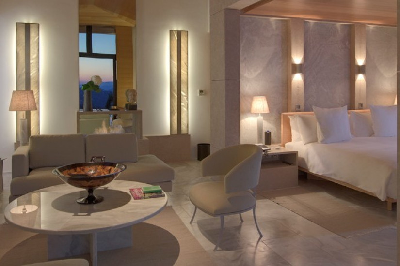 - состоит из пяти спален с зоной отдыха, просторной общей гостиной и обеденной зоны, пяти ванных комнат, кухни, кабинета и комнаты для спа-процедур, просторного внутреннего двора с террасой и зоной отдыха и 20-метровым бассейном. Гостям виллы предлагаются услуги шеф-повара и дворецкого. Вилла, окруженная оливковой рощей, имеет великолепные виды на Эгейское море и на окружающую природу.