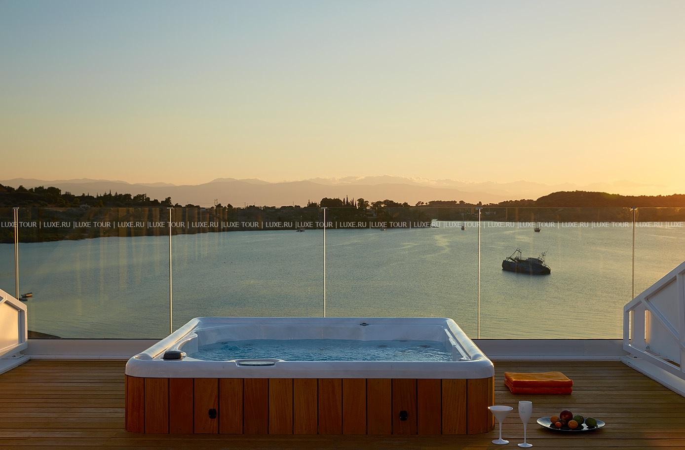 В отеле имеется открытый бассейн-инфинити с панорамным видом на море.