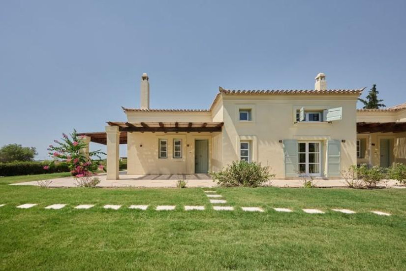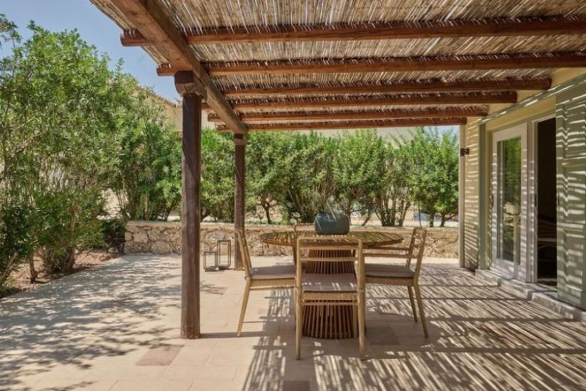 - 55 м2. Состоит из спальни с кроватью king-size или двумя кроватями twin и зоной отдыха с диваном, ванной комнаты с ванной и душем, террасы с зоной отдыха, обеденной зоной, выходом к бассейну, общему с соседними номерами, и видом на залив Порто-Хели и пляжный клуб. Максимальное размещение – 2 взрослых.