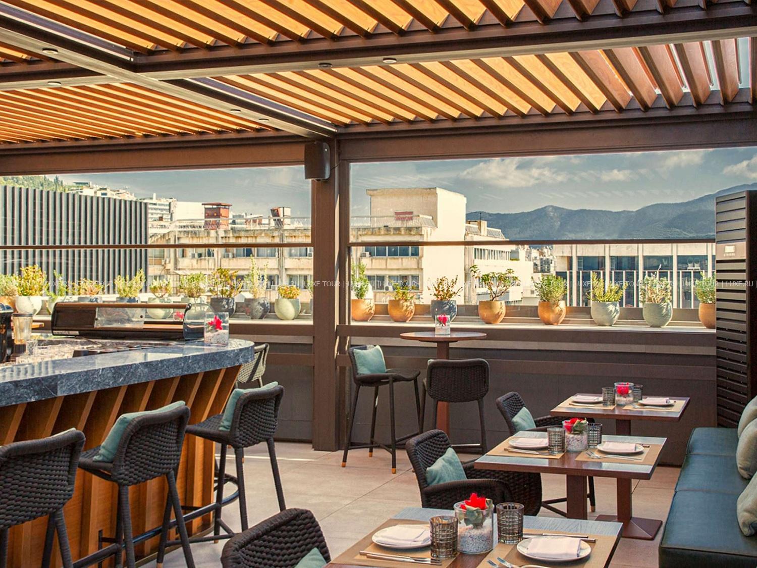 • Mappemonde – ресторан и бар с широким выбором авторских коктейлей, изысканных блюд средиземноморской кухни и открытой террасой на крыше, откуда открывается потрясающий вид на Афины.