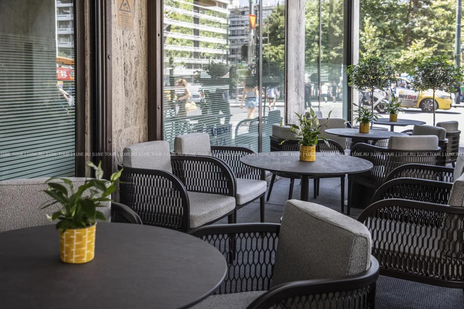 • В ресторане Parliament с видом на улицу Стадиу сервируют вкусный завтрак «шведский стол» с блюдами международной и греческой кухни.