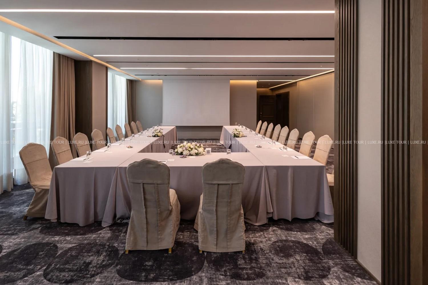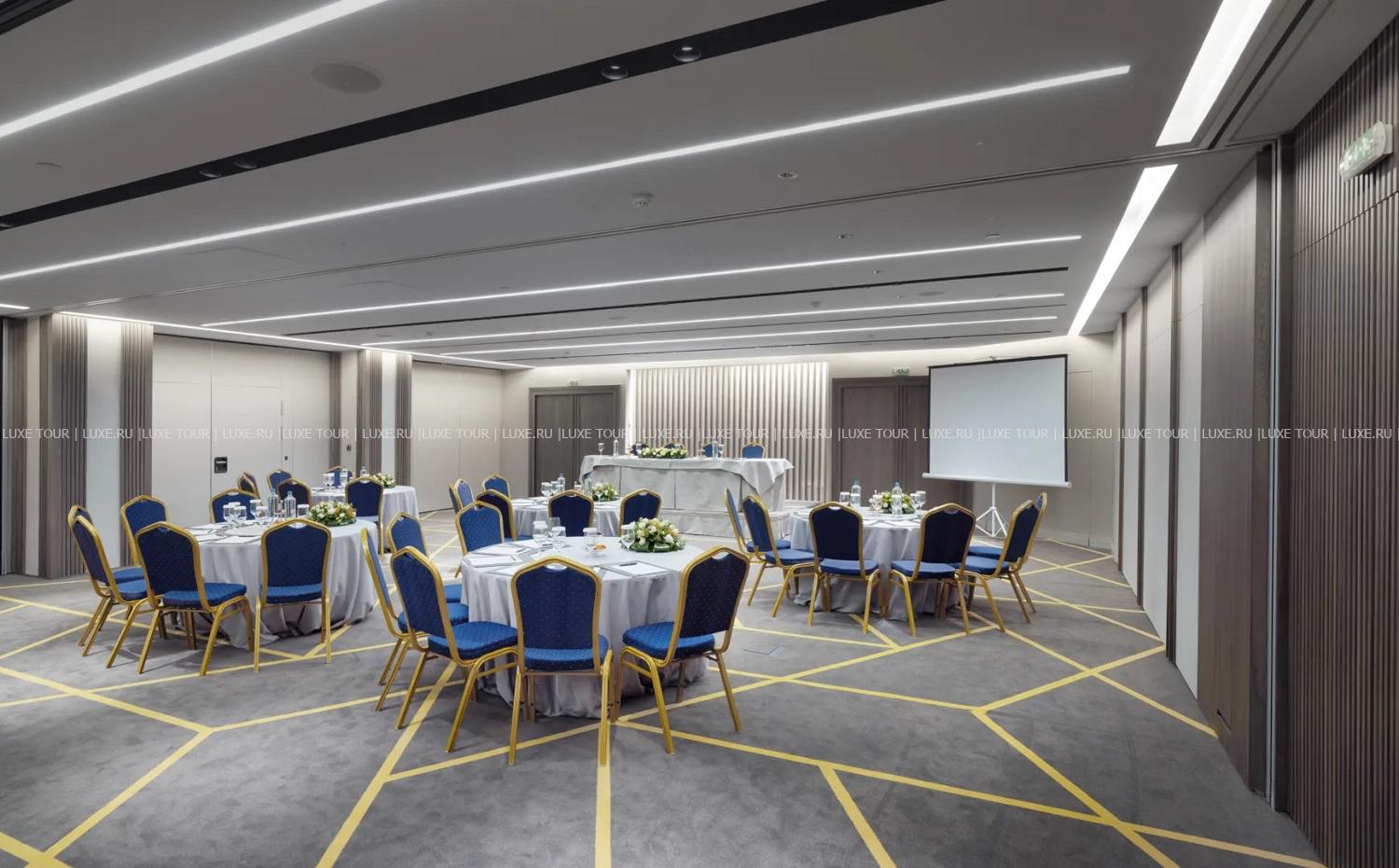 Для гостей – многофункциональный зал площадью 280 м2 и вместимостью до 300 человек, бизнес-центр, Wi-Fi, аренда машин, лимузин-сервис, услуги консьержа, услуги прачечной.