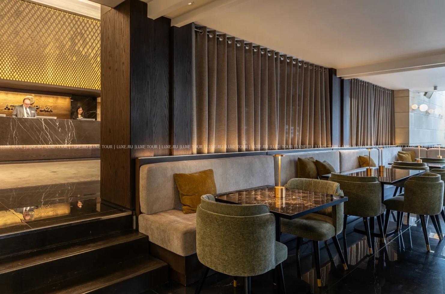 • В уютном лобби-кафе Plaza с летней террасой в течение дня можно перекусить, выпить чашечку кофе с десертами и отдохнуть за коктейлем или бокалом вина.