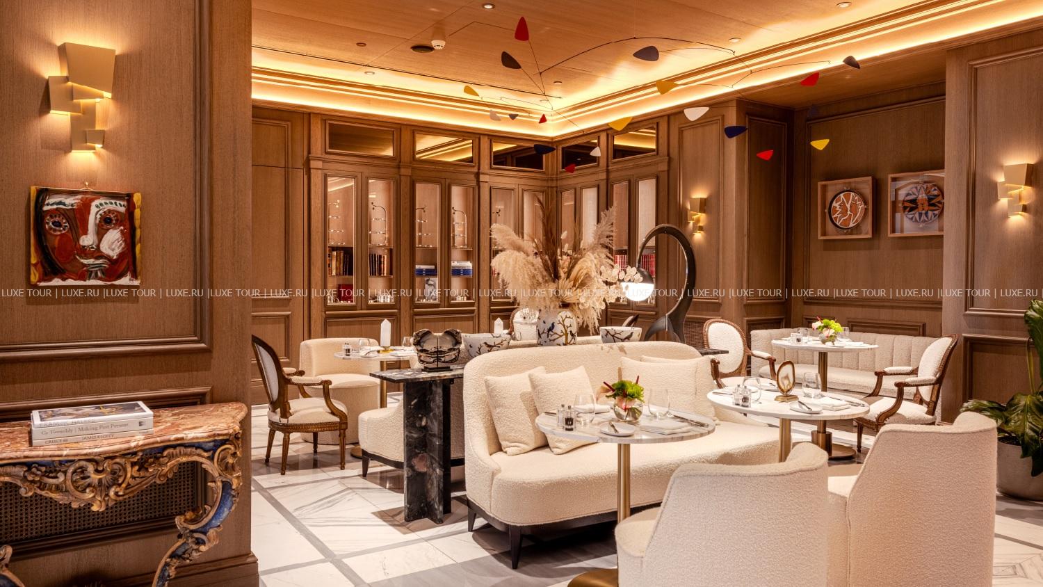 • В роскошном лаундже, украшенном оригинальными работами знаменитых художников и произведениями искусства XVIII века, подают изысканные закуски и напитки.
