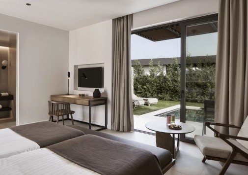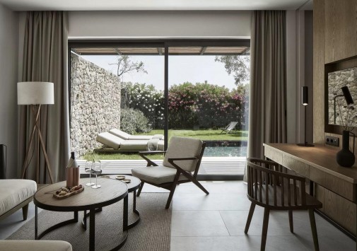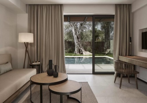 The Olivar Suites раскинулся у частного пляжа с золотистым песком и изумрудного Ионического моря, среди ярких бугенвиллий и оливковой рощи площадью 27 000 м2. Архитектура отеля выдержана в местных традициях, а стильные номера с собственными бассейнами – все категории Suite, расположены в бунгало, идеально вписанных в окружающий ландшафт. В центральном бассейне отражается старинная мельница, где в XVIII веке производили оливковое масла, а сегодня разместился уютный бар, элегантный ресторан отеля предлагает изысканные блюда региональной и средиземноморской кухни, а Spa-центр – эксклюзивные процедуры, основанные на традициях древнегреческих целителей. The Olivar Suites сочетает многовековое наследие Корфу и современный сервис премиум-класса.