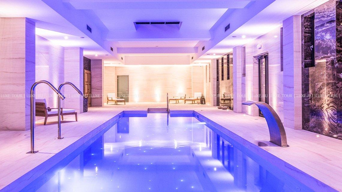 В отеле имеются большой открытый и крытый бассейны.