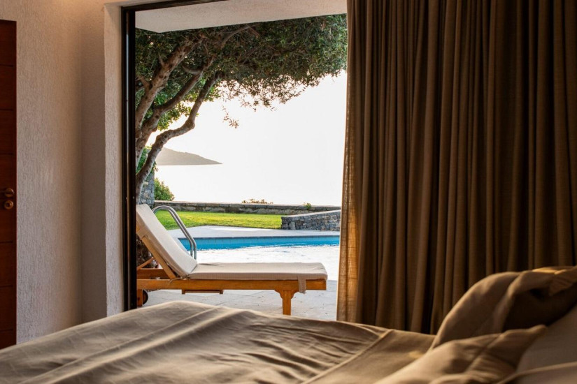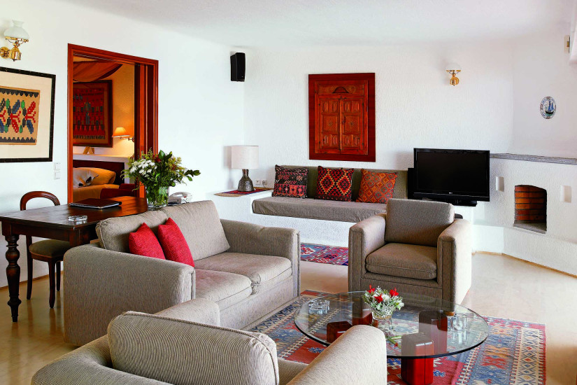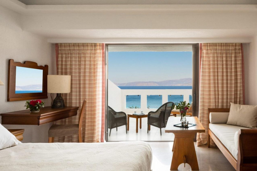 - Всего в отеле 80 номеров - 44 из которых расположены в основном здании и 36 - отдельно стоящие бунгало с собственными бассейнами с морской водой. Все номера выполнены в традиционном греческом стиле, в интерьерах использованы предметы антиквариата. В номерах, расположенных в основном здании и отдельно стоящих бунгало — стильные интерьеры в светлых тонах, сочетающие современный дизайн и традиционный греческий колорит, с отделкой из натурального дерева и камня, элегантной мебелью, оригинальными украшениями, балконами и террасами с чудесным видом на Эгейское море и живописные сады.