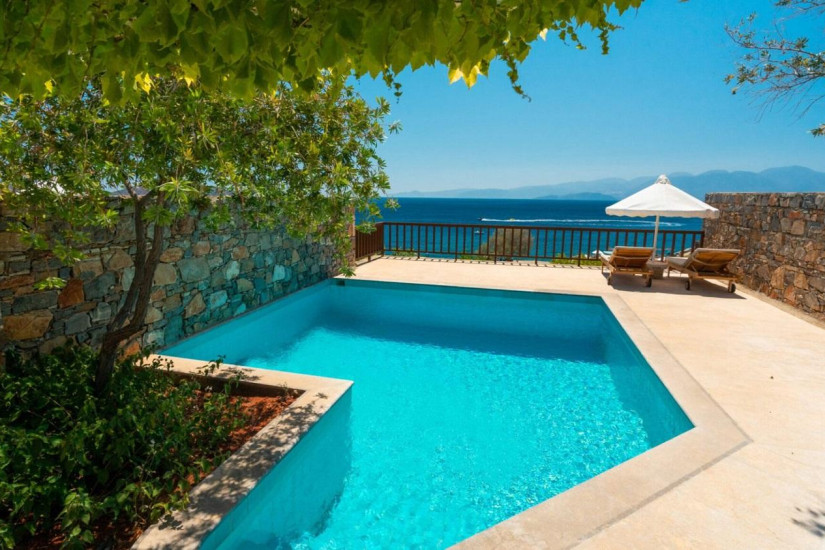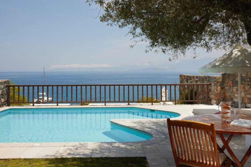 - 35-55 м2. Состоит из спальни, гостиной зоны (в некоторых номерах - отдельная гостиная), ванной комнаты, меблированного небольшого собственного сада с бассейном и видом на море. Максимально размещение - 3 взрослых.