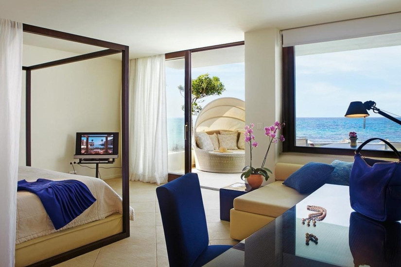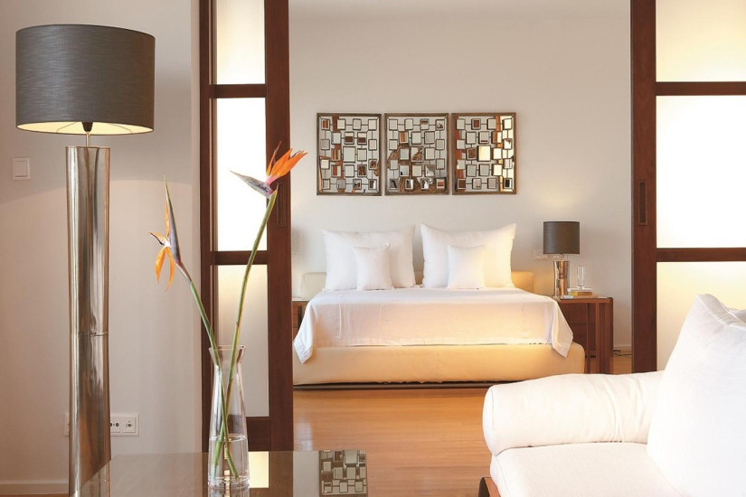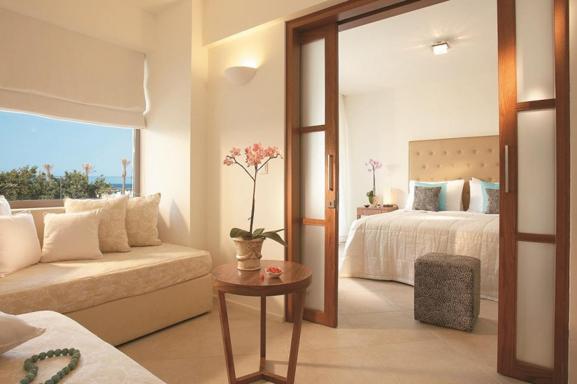 - 40 м2. Состоит из спальни, гостиной, которая отделяется от спальни раздвижными дверьми, гардеробной, ванной комнаты, меблированного балкона с видом на море и сады. Номера расположены в крыле Candia. Максимальное размещение — 2 взрослых + 2 ребенка.