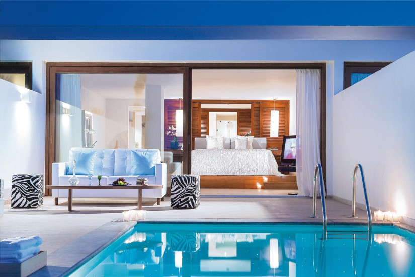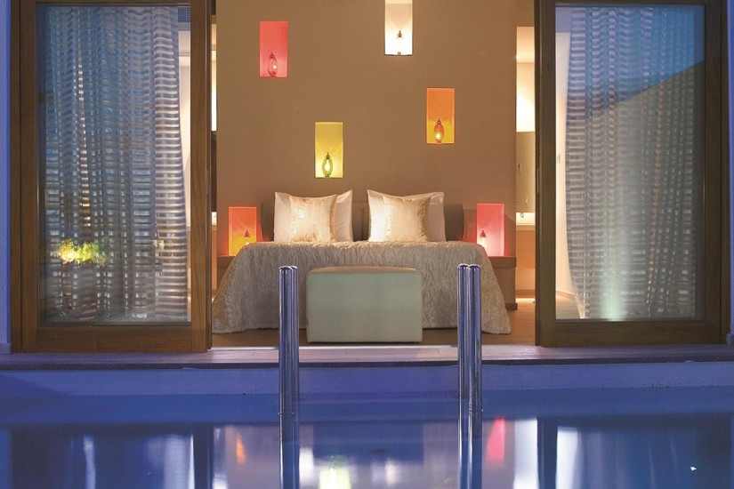 - 31 м2 + 72 м2 (терраса) + 15-19 м2 (бассейн). Состоит из спальни с зоной отдыха, ванной комнаты, террасы, лужайки с бассейном. Номера расположены в крыле Candia. Максимальное размещение - 2 взрослых + 1 ребенок.