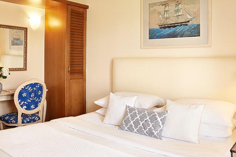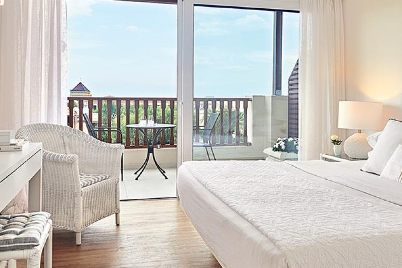 - 26 м2. Состоит из спальни с двуспальной кроватью или двумя кроватями twin и зоной отдыха с диваном, ванной комнаты с ванной, балкона с видом на сад или с боковым видом на море. Номера располагаются в главном корпусе. Максимальное размещение – 3 взрослых или 2 взрослых + 1 ребенок.