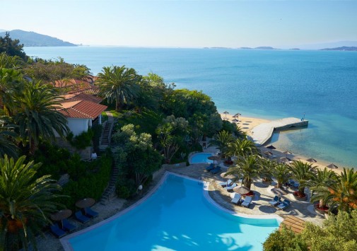 Отель располагает открытым бассейном с морской водой, который находится на нижнем уровне отеля у пляжа; рядом расположен детский бассейн, в СПА Центре — крытый бассейн. Для гостей открыт теннисный корт и Центр дайвинга (с сертификатом PADI) центр водных видов спорта (водные лыжи, водные мотоциклы, каноэ, виндсерфинг, параплан, моторные лодки, водные велосипеды); предлагается пляжный волейбол, настольный теннис, аренда яхт для круизов и посещений частных пляжей, морской трансфер на моторных лодках на гору Афон, остров Ammouliani.