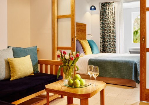 - Изысканный гастрономический ресторан Kamares с террасой и незабываемым видом на море и соседний остров сервирует деликатесы международной кухни.