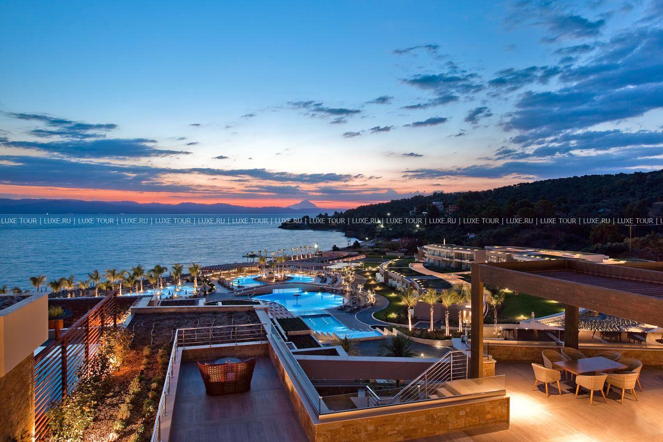 Современный комплекс Miraggio Thermal Spa Resort Халкидики раскинулся амфитеатром на 132 гектарах, среди средиземноморских садов, спускающихся к великолепному белоснежному пляжу и прозрачным бирюзовым водам Эгейского моря. На девяти уровнях шикарного отеля расположились элегантные номера с балконами, большинство из которых – с видом на море, а некоторые и с собственными бассейнами, а также рестораны и бары с разнообразием изысканных блюд и напитков, три лазурных бассейна с морской водой, клубы для детей и подростков, роскошный центр Thermal Spa площадью 3000 м2 и частная гавань с причалом для яхт. Miraggio Thermal Spa Resort Халкидики предлагает незабываемый отдых в окружении первозданной природы древнего полуострова Кассандра.