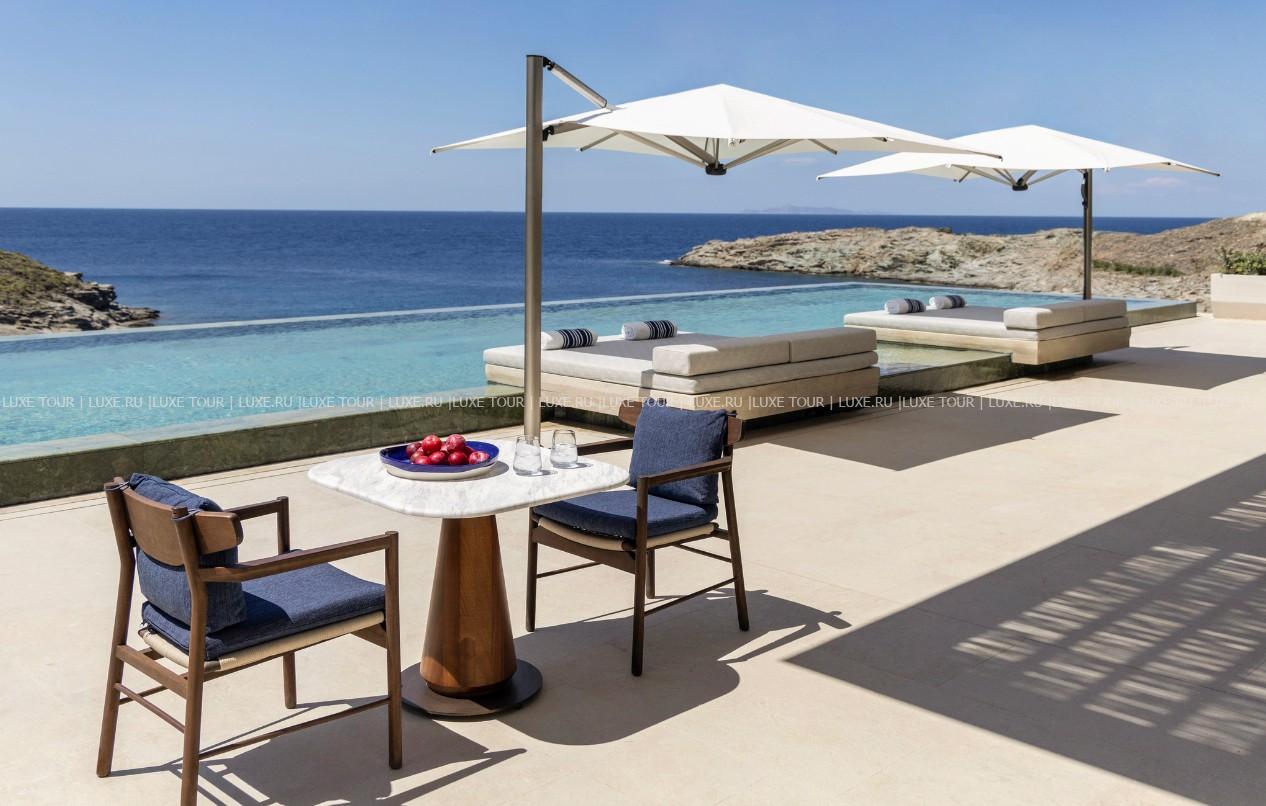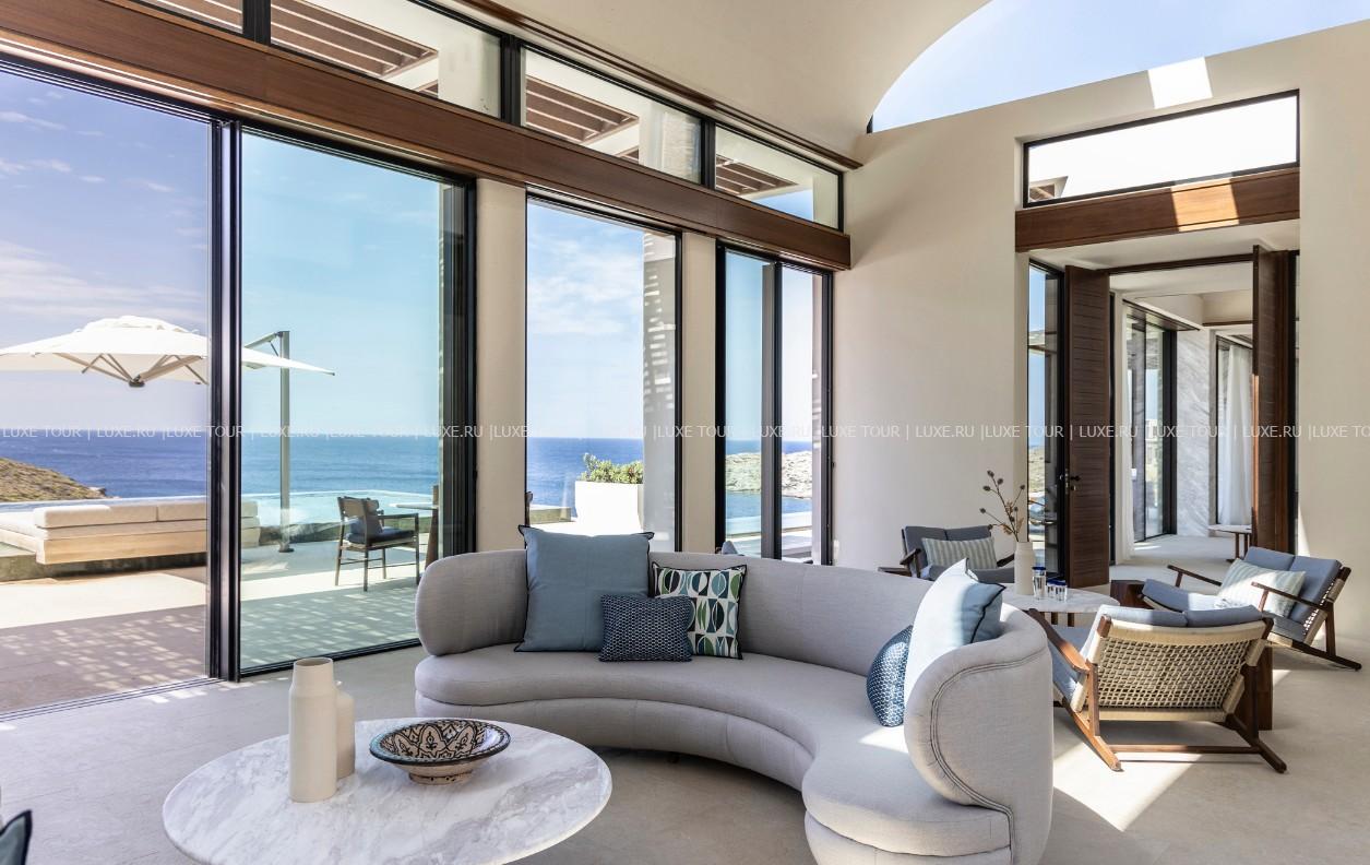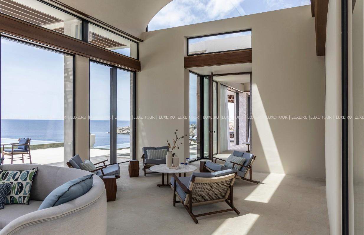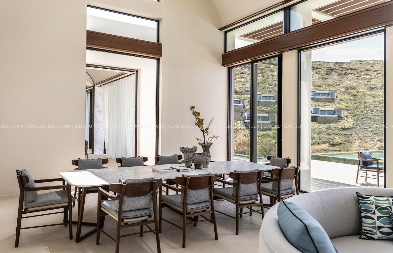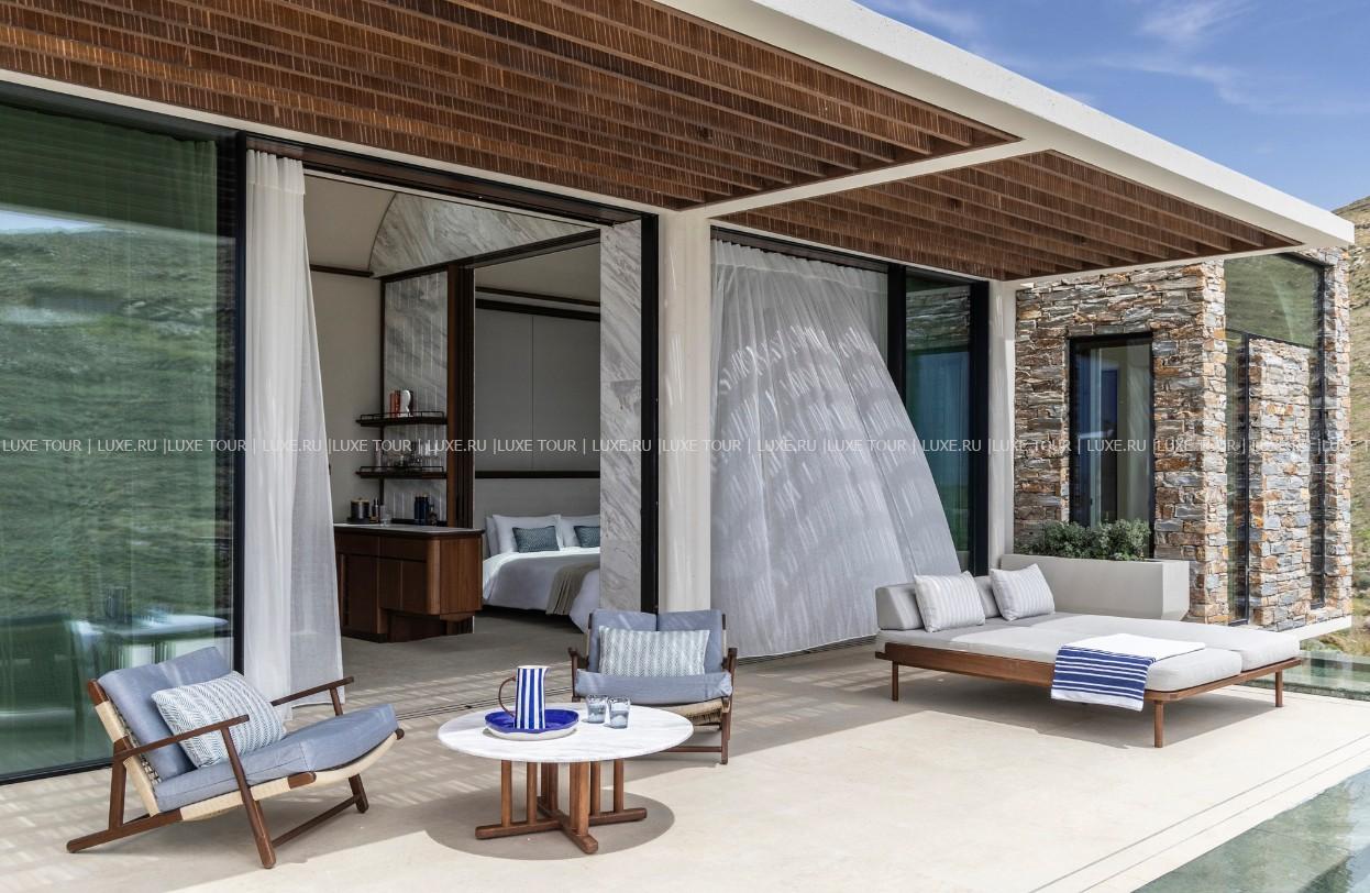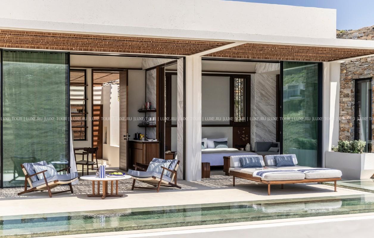В отеле 69 вилл различных категорий. Шикарные виллы с одной или двумя спальнями декорированы в современном стиле, навеянном средиземноморскими мотивами, а с террас с собственными бассейнами открывается панорамный вид на живописные островные пейзажи и сверкающее Эгейское море.