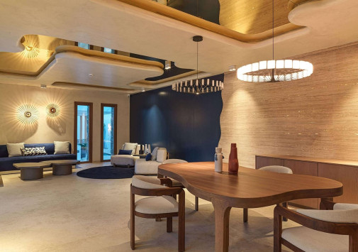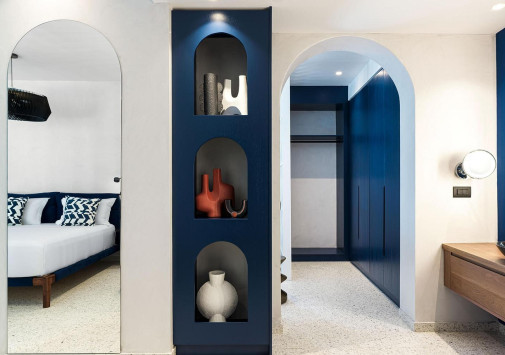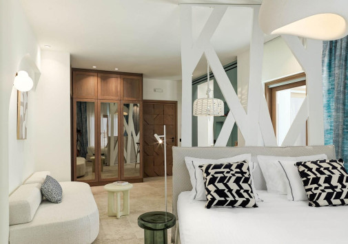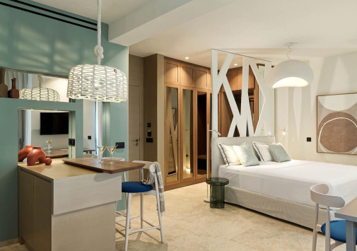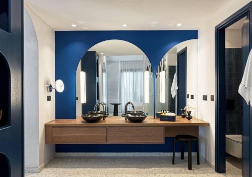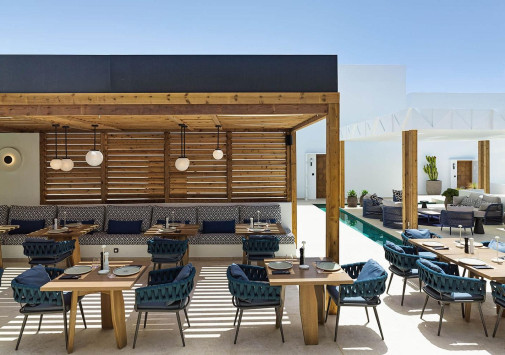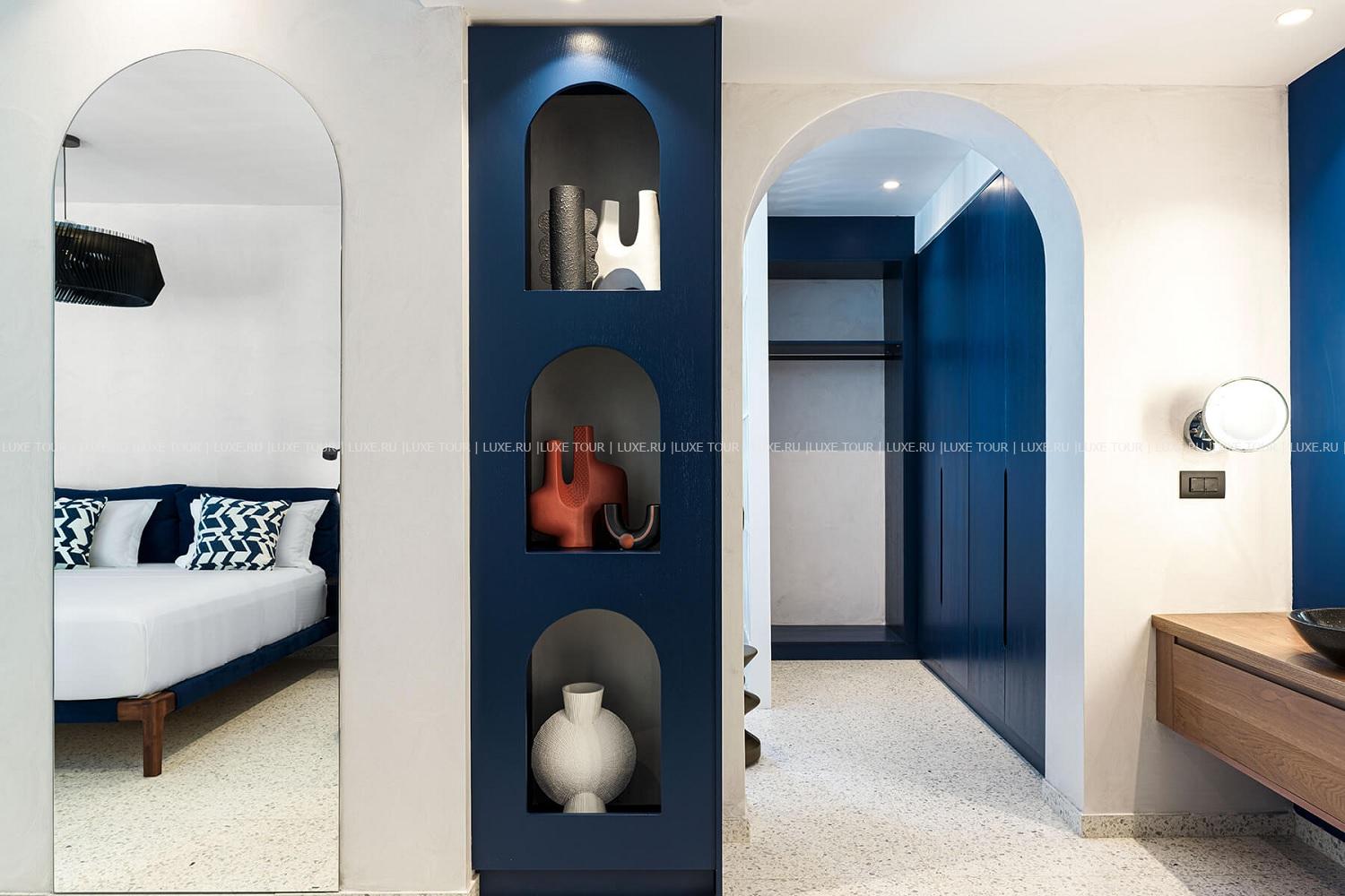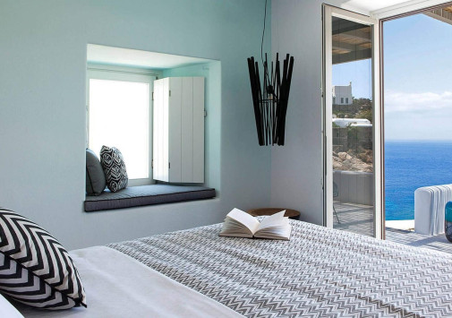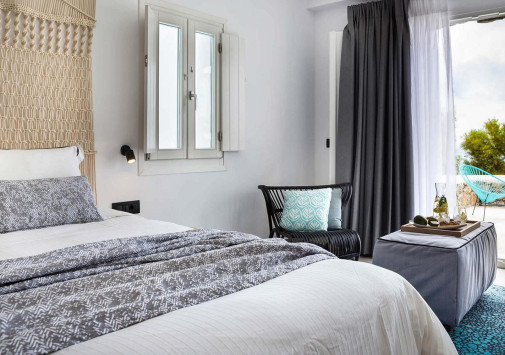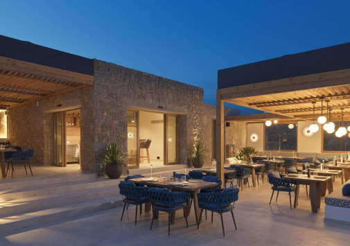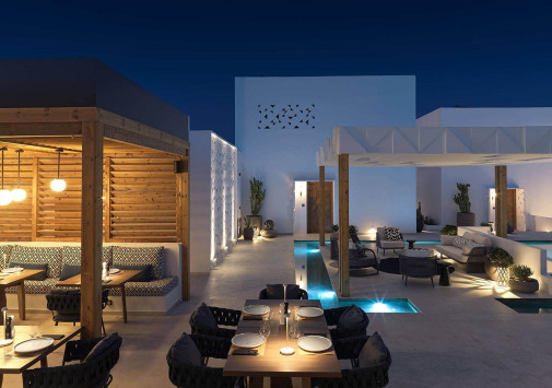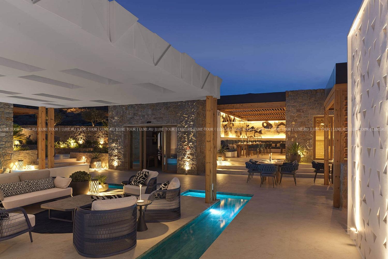Amyth of Mykonos Super Paradise разместился на вершине холма, с которого открывается фантастический вид на бескрайнюю бирюзу Эгейского моря. Архитектура и интерьеры отеля сочетают современный средиземноморский стиль и аутентичные традиции Миконоса: белоснежные здания с ярко-синими ставнями, отделка из натурального дерева и камня, текстиль с традиционным орнаментом и изделия кикладских мастеров. При этом, гостям предлагается весь спектр высококлассных услуг – от шикарных номеров с персональными бассейнами, греческого ресторана с превосходной кухней и коктейль-бара на панорамной террасе до Spa и фитнес-центров, водного спорта и разнообразия других развлечений. Amyth of Mykonos Super Paradise – райский уголок на популярном курорте Миконоса.