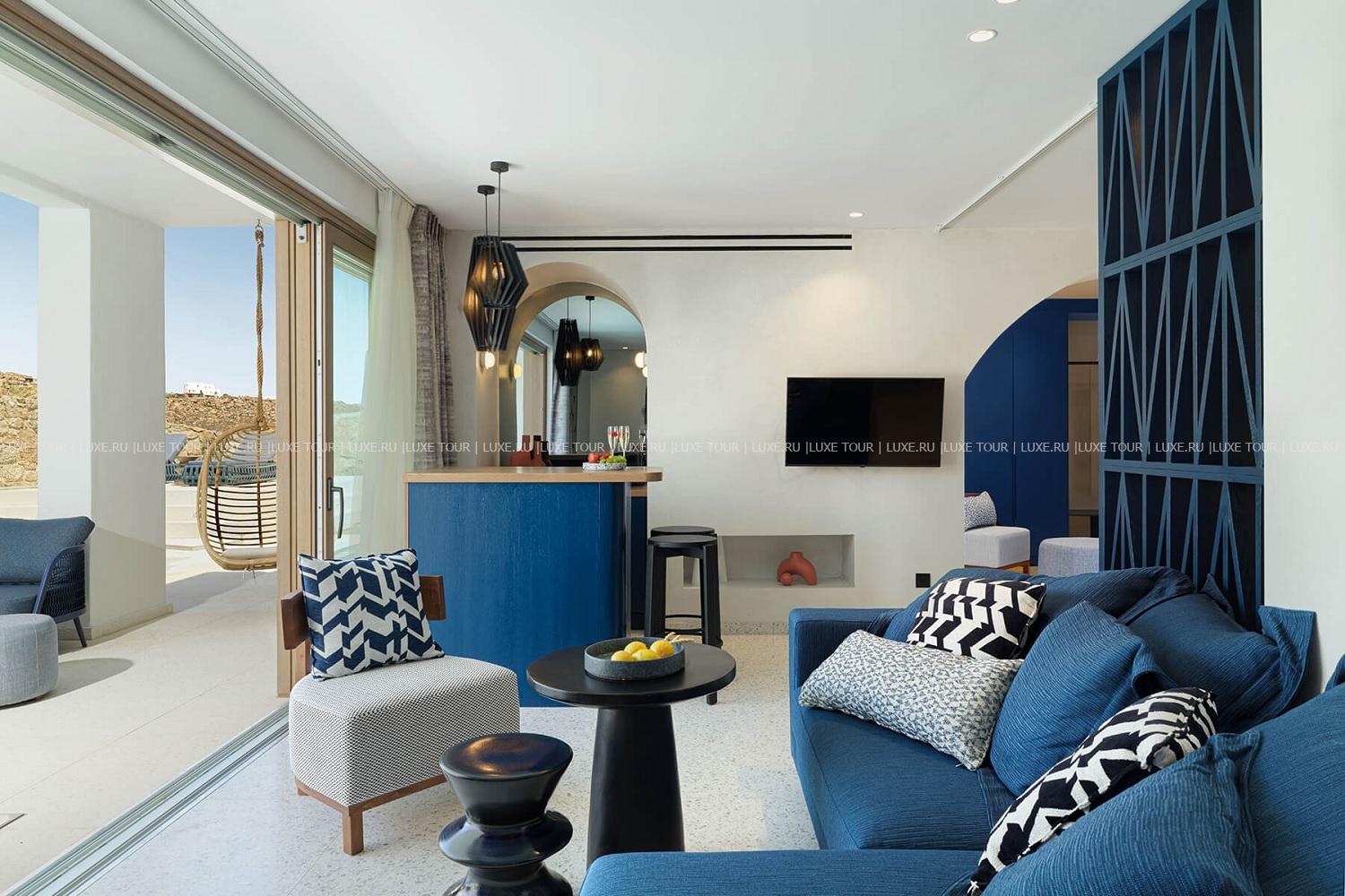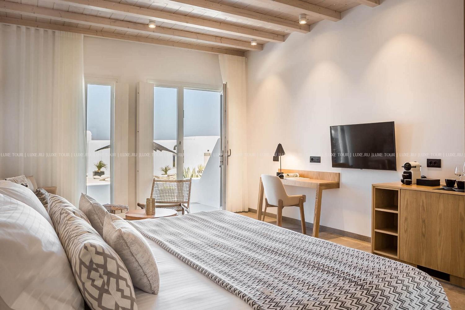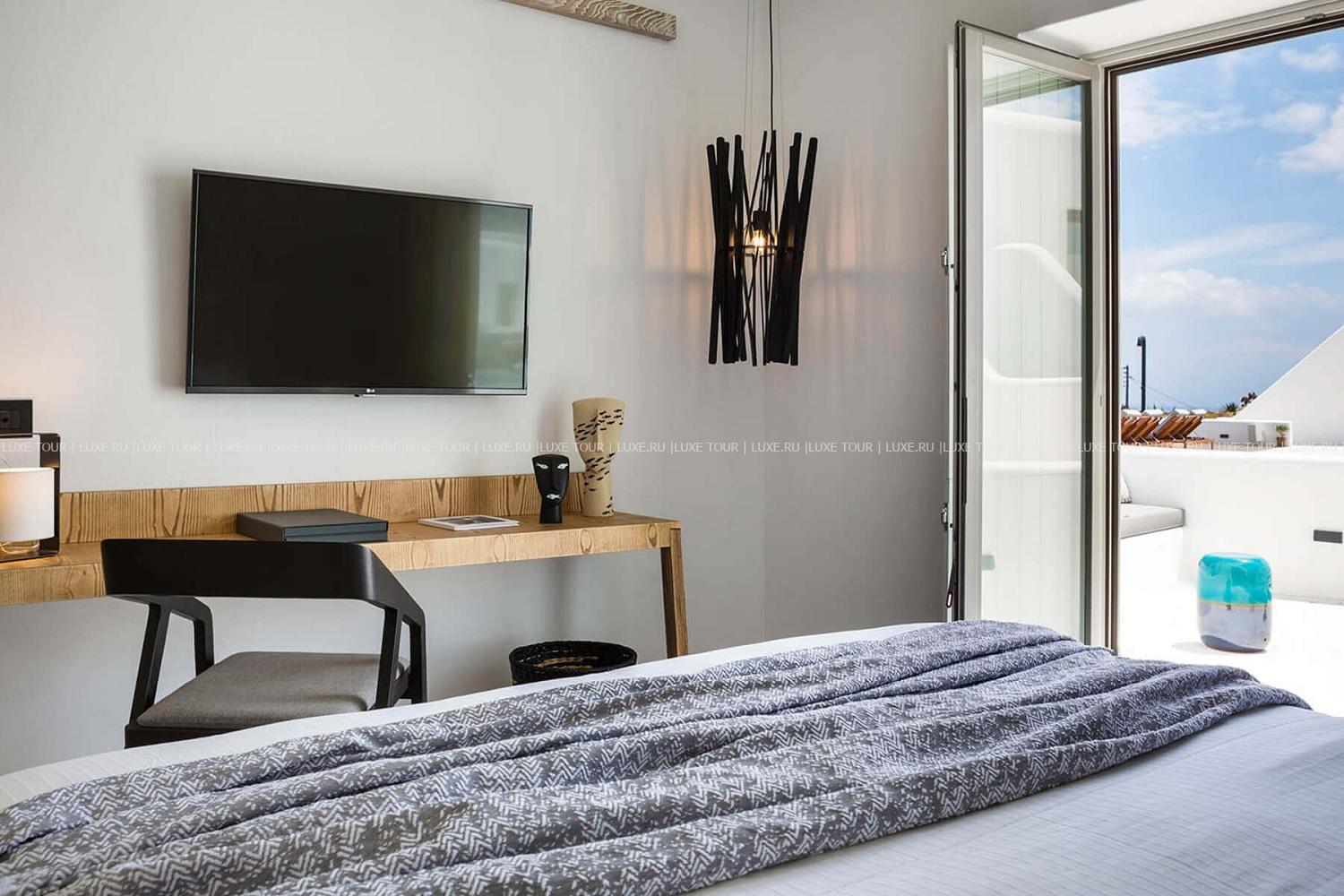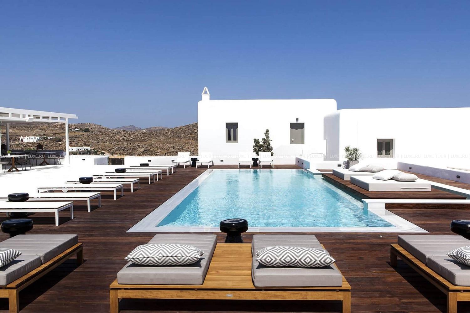 Для гостей – бутик, Wi-Fi, парковка, аренда машин, шаттл в центр Миконоса, услуги консьержа, услуги прачечной.