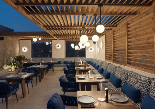 • Стильный ресторан Amyth Kouzina с открытой террасой предлагает изысканные блюда греческой и средиземноморской кухни.