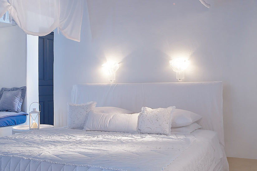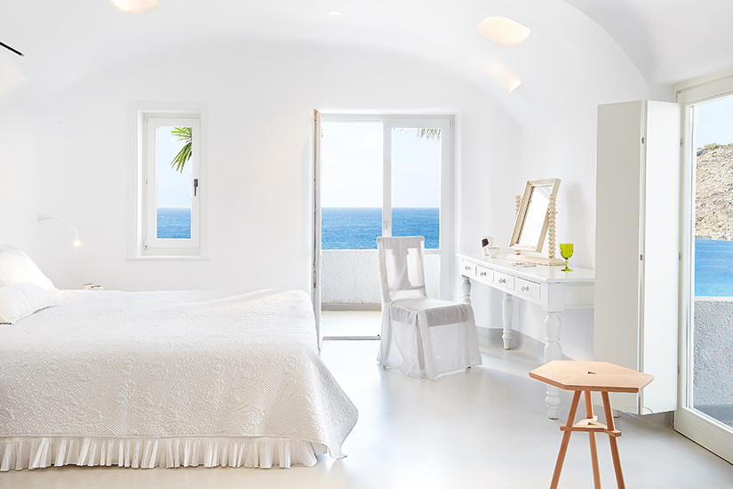 - 25-29 м2. Расположен у моря, убранство сочетает греческий минимализм и гармонию. Состоит из спальни с гостиной зоной, ванной комнаты (в некоторых номерах открытого плана), веранды, которая выходит на море. Максимальное размещение – 2 взрослых + 1 ребенок.