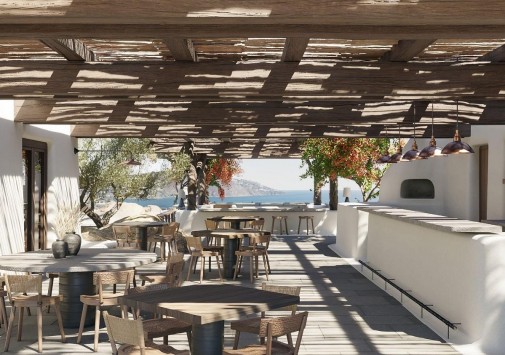 • Aloni – уютный лаундж-бар на террасе с открытым очагом и великолепным панорамным видом на море и остров Делос.