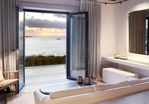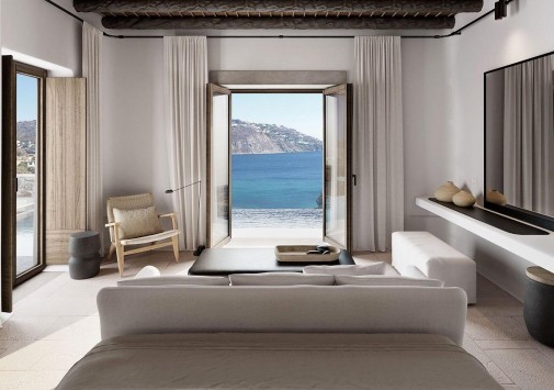 На склонах высокого живописного холма, спускающегося к песчаному пляжу и сверкающему заливу Орнос, расположен бутик-отель Kalesma Mykonos, построенный в стиле традиционной миконской деревни. Местный колорит дополнен ультрасовременным минималистским дизайном и эксклюзивными удобствами шикарного отеля. Так, все стильно декорированные номера и виллы располагают террасами с собственными подогреваемыми бассейнами и 360-градусным панорамным видом на Эгейское море и остров Делос. Впрочем, любоваться завораживающим видом на окружающие морские пейзажи гости могут в отеле отовсюду – плавая в большом бассейне, наслаждаясь вкусными греческими блюдами в ресторане или потягивая коктейли в барах. Kalesma Mykonos, название которого переводится как «приглашение», сочетает греческое гостеприимство, первоклассный сервис и древние традиции острова Миконос.