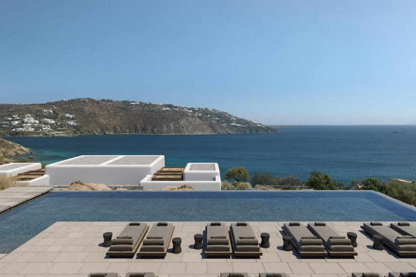 - 240 м2 + терраса 300 м2. Трехуровневая вилла состоит из трех спален (две с кроватью king-size и одна – с двумя кроватями), гостиной, обеденной зоны, полностью оборудованной кухни с винным холодильником, тренажерного зала, гардеробных, трех ванных комнат (две с ванной и душем), душа на открытом воздухе, просторной террасы с подогреваемым бассейном, зонами отдыха, обеденной зоной и панорамным видом на море, остров Делос и закат. Максимальное размещение – 6 взрослых. Гостям виллы предоставляются услуги дворецкого.