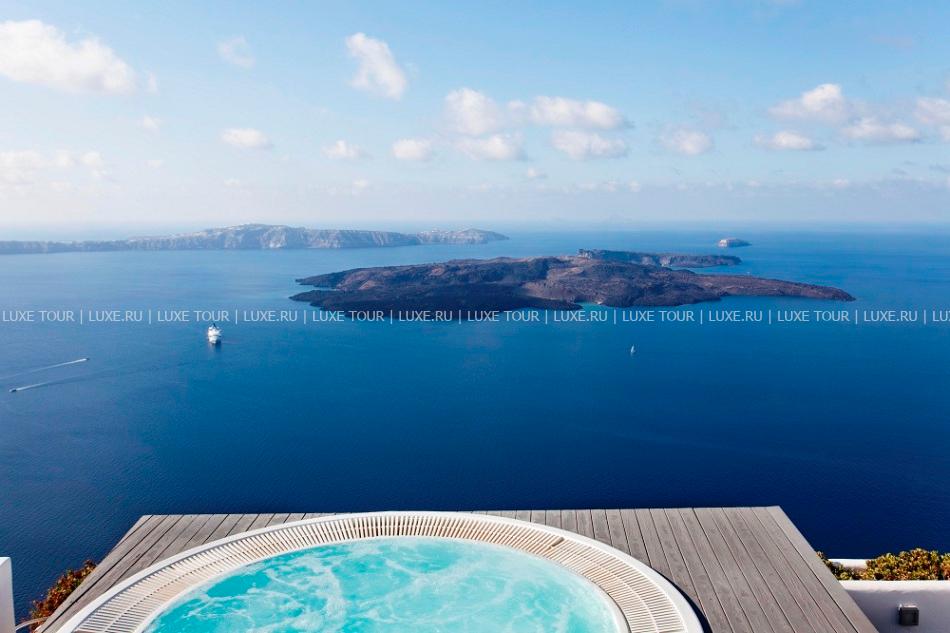 Отель расположен на побережье греческого острова Санторини, входящего в архипелаг островов Киклады, на живописной скале, рядом с курортным местечком Imerovigli, в 10 минутах езды от столицы острова - города Фира (Fira), в 10 км от международного аэропорта и порта Athinios.