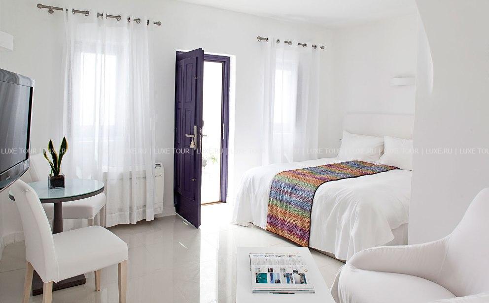 Небольшой Katikies Chromata, построенный в стиле современной архитектуры Кикладских островов, расположился на вершине живописной скалы, возвышающейся над сверкающими водами Эгейского моря. Дизайнерская концепция отеля отражена в оригинальных интерьерах номеров: необычное освещение и интересная цветовая гамма, оригинальные оформительские решения, отделка из камня и тканей, изящная мебель и изысканные украшения в греческом стиле, с уютных веранд открывается потрясающий вид на море, вулкан и окружающие ландшафты. Отель располагает открытым бассейном, предлагаются водные виды спорта на берегу. В ресторане и баре у бассейна, откуда открывается захватывающий вид на вулкан и море, предлагаются разнообразные напитки, легкие закуски, а также блюда местной и интернациональной кухонь. В элегантном гастрономическом ресторане Chromata Gourmet Restaurant, расположенном на стеклянном полу над гладью бассейна, подаются деликатесы греческой и средиземноморской кухонь. Katikies Chromata сочетает атмосферу изысканного комфорта и уединенности с уникальными элементами современного дизайнерского искусства и традиций островной Греции.