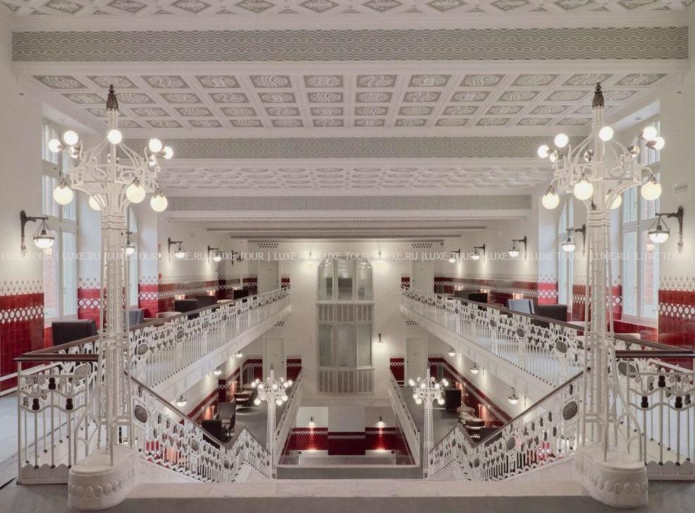 Kozmo Hotel Suites & Spa занимает историческое здание, расположенное в тихом районе в центре Будапешта, рядом с Большим бульваром и знаменитыми достопримечательностями венгерской столицы. За элегантным фасадом, украшенным лепниной и увенчанным башнями, скрываются великолепные интерьеры, сочетающие стильный современный дизайн, изысканный классический стиль и архитектурные элементы старинного здания. Гостям фешенебельного отеля предоставляется весь спектр услуг: оформленные с изящным вкусом комфортабельные номера с видом на город, гастрономические изыски в ресторане и баре, эксклюзивные процедуры в Spa-центре с бассейном и сауной, современно оснащенные конференц-залы. Kozmo Hotel Suites & Spa, входящий в ассоциацию «Ведущих отелей мира» – прекрасный выбор для деловых и туристических поездок в Будапешт.