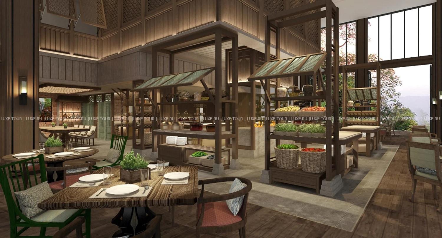 • Элегантный ресторан Kirana с открытой террасой и видом на тропический лес представляет разнообразие интернациональной и индонезийской кухни на «шведском столе» и в меню a la carte.