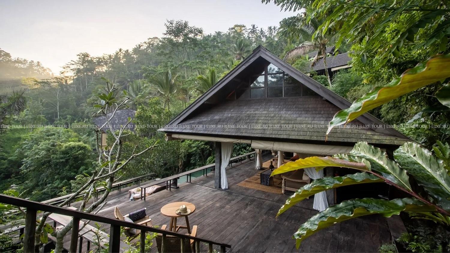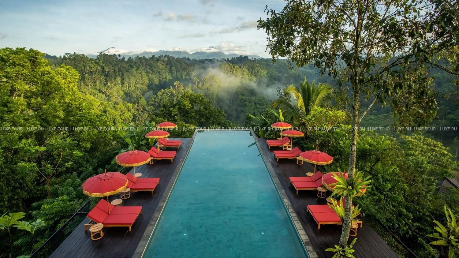 Отель для взрослых Среди буйной тропической зелени и изумрудных рисовых террас разместились виллы Buahan - Banyan Tree Escape. Название Escape говорит само за себя – здесь действительно ощущается полное уединение, и время течет в другом темпе. Виллы в традиционном балийском стиле спроектированы так, чтобы из каждого их уголка можно было любоваться мистической красотой джунглей, семью легендарными горными вершинами, танцующими ночью светлячками и рассветными туманами Бали. Помимо этого, гостей ждут изысканные блюда, приготовленные из местных фермерских продуктов, спа-процедуры на основе древних индонезийских традиций, панорамный бассейн и другие эксклюзивные услуги. Buahan - Banyan Tree Escape – райский уголок для романтического отдыха.
