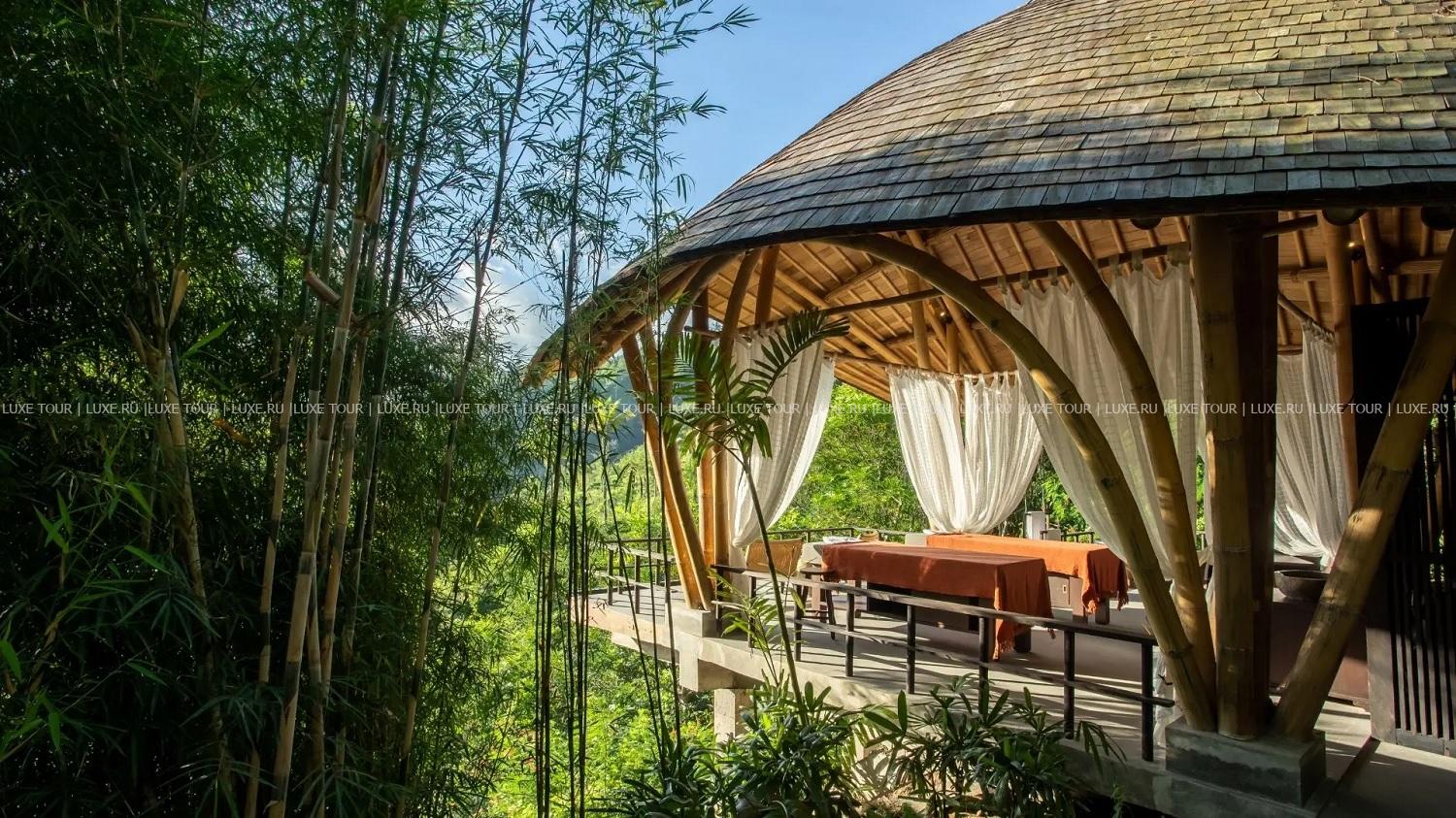 Центр Toja Spa, название которого переводится как «вода», расположен в павильоне с открытыми террасами, окруженном тропическими зарослями, и предлагает эксклюзивные процедуры, основанные на древних балийских традициях и использовании натуральных местных ингредиентов.