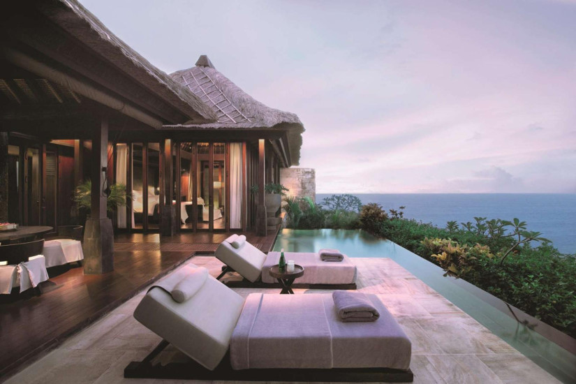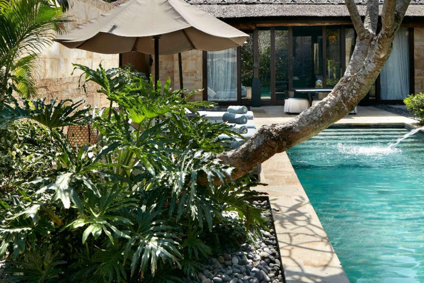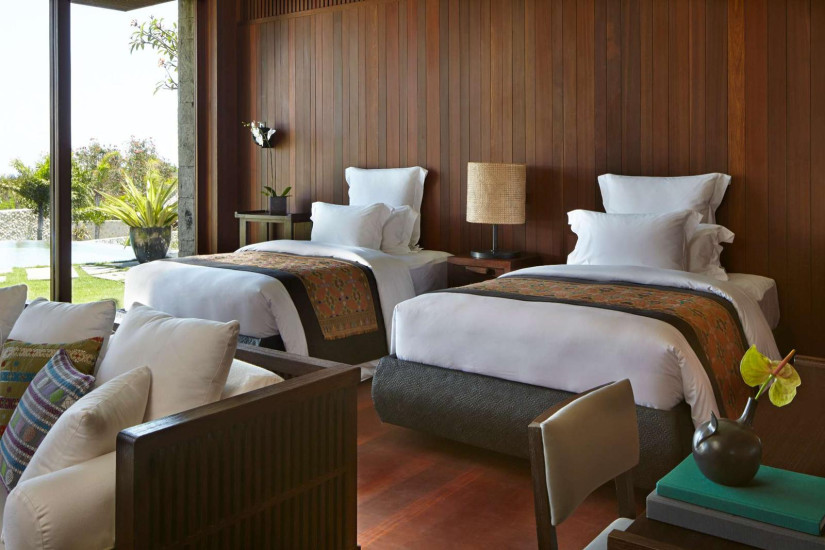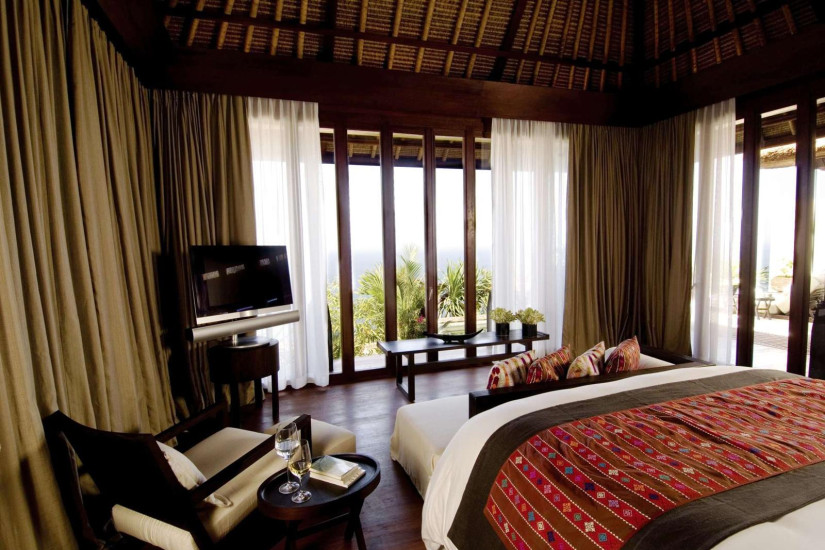В отеле 59 комфортабельных вилл, выполненных в индонезийском стиле из вулканических пород: изящные строения с крышами из дерева иланг-иланг, красивыми бронзовыми фонарями при входе, с уютными традиционными внутренними двориками. В номерах — стильные интерьеры, сочетающие современный итальянский дизайн и традиции острова Бали, с отделкой из экзотических пород дерева и камня, изящной мебелью, украшенные оригинальными элементами декора, а также предметами антиквариата и произведениями искусства работы местных авторов. Каждая из вилл включает спальни, ванную комнату со стеклянной стеной, открытый павильон – гостиную с обеденной зоной, внутренний дворик с садом, меблированную террасу с бассейном. Виллы оборудованы аппаратурой от Bang and Olufsen, гостям предоставляются услуги дворецкого.