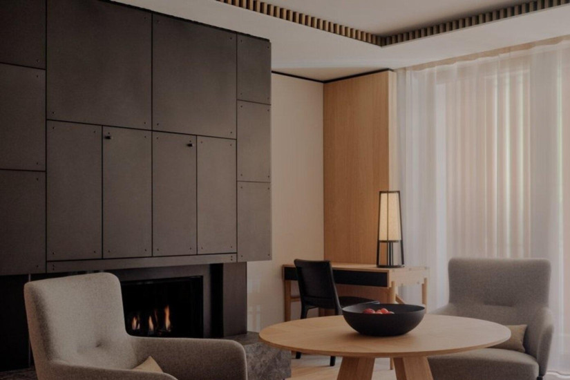 - 158 м2. Роскошный номер состоит из двух спален с кроватью king-size, гостиной с обеденной зоной на 6 персон, зоной отдыха и камином, мини-кухни, гардеробных, двух ванных комнат (одна с ванной и паровым душем, вторая с паровым душем), гостевой туалетной комнаты, просторной террасы с зоной отдыха и панорамным видом на лес, горы и южную сторону.