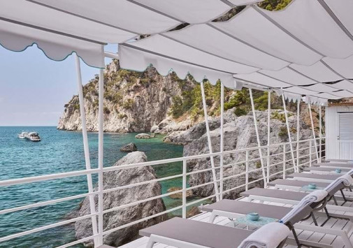 Пляж отеля с пляжным клубом Da Gioia by La Palma и рестораном расположен на южном побережье Капри, в престижном районе Марина-Пиккола.
