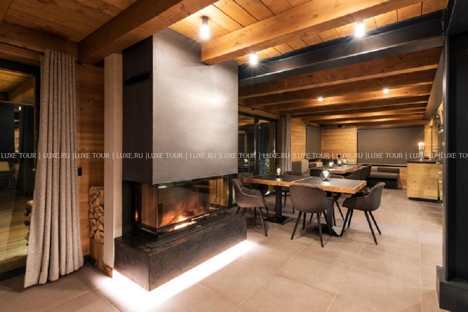 - Ресторан с открытой панорамной террасой и лаундж-бар в шале La Loge du Massif, расположенном у трасс на высоте 2000 м, – идеальное место для отдыха après-ski.