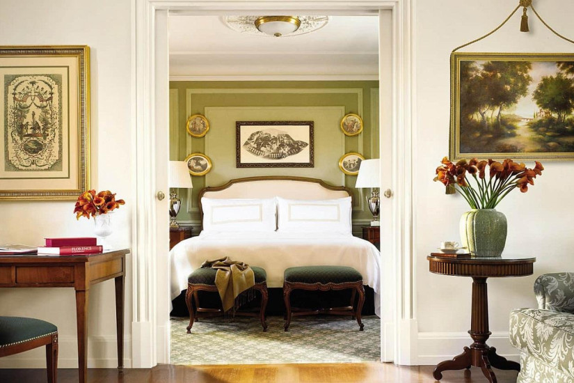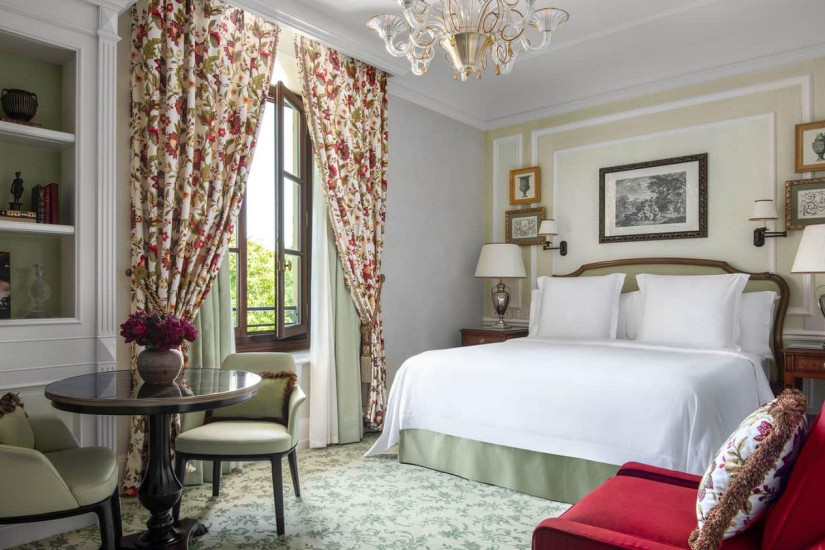 - 55 м2. Состоит из спальни с кроватью king-size или двумя кроватями twin и зоной отдыха с диваном, ванной комнаты, в некоторых номерах балкон с видом на парк отеля или соседние сады и резиденцию. Номера расположены в палаццо Della Gherardesca. Максимальное размещение – 3 взрослых. Возможно присоединение дополнительной спальни.