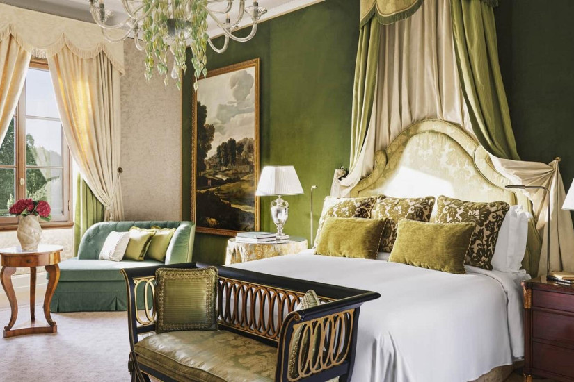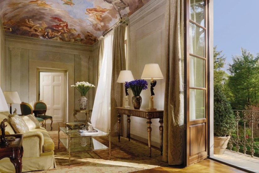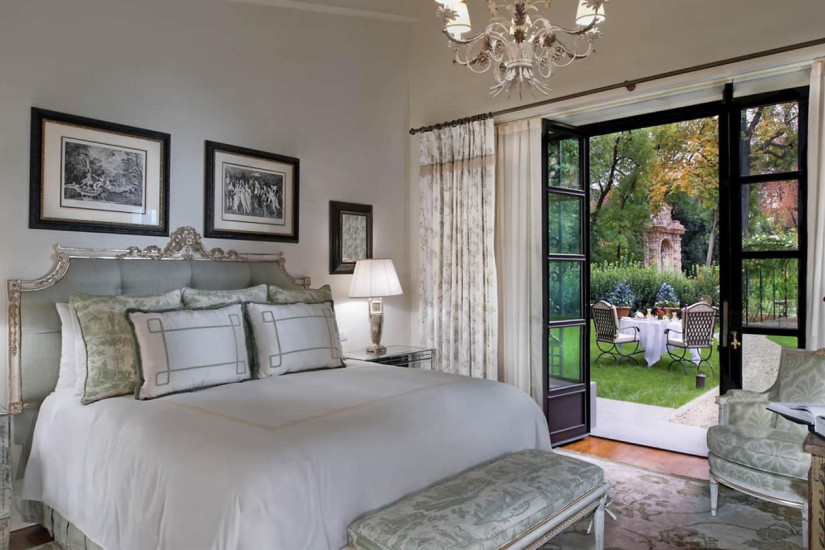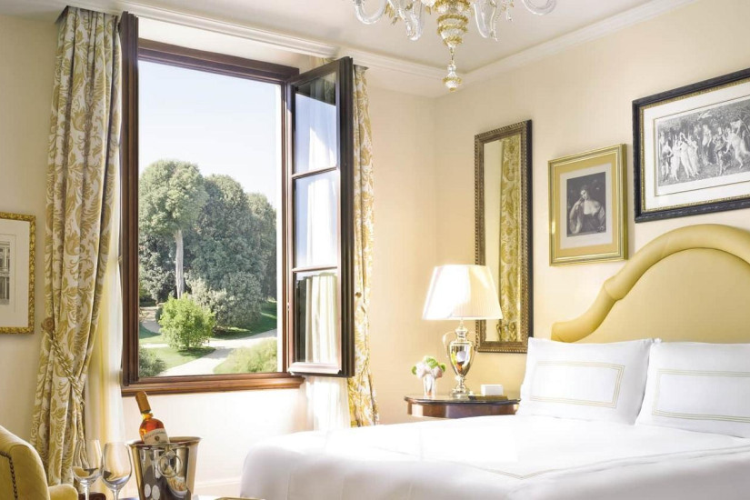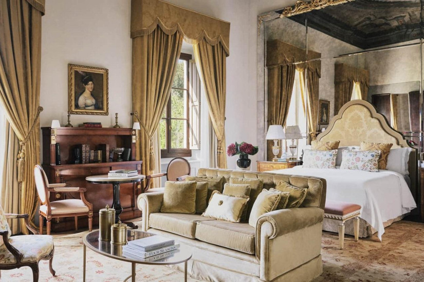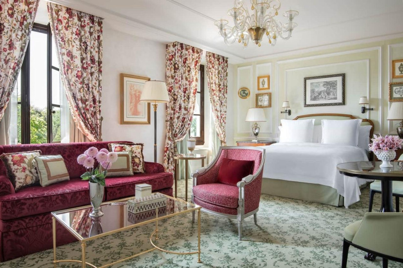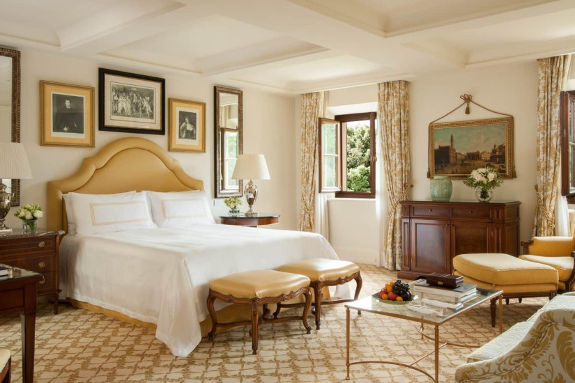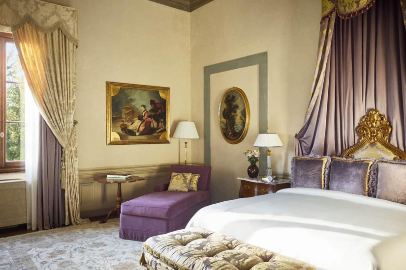 - 45 м2. Состоит из спальни с кроватью king-size или двумя кроватями twin и зоной отдыха с диваном, ванной комнаты. Вид на парк отеля или соседние сады и резиденцию. Номера расположены в особняке La Villa или в палаццо Della Gherardesca. Максимальное размещение – 3 взрослых. Возможно присоединение дополнительной спальни.
