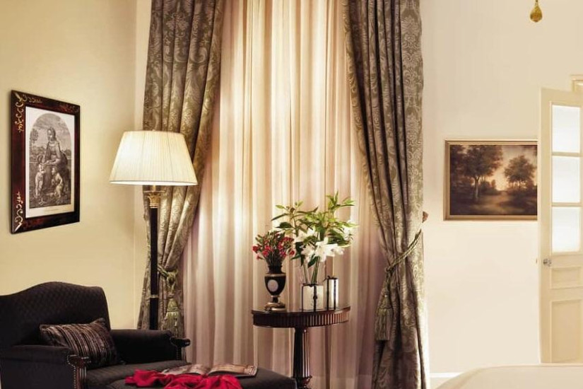 - 121 м2. Фешенебельный номер с уникальным историческим интерьером состоит из спальни с кроватью king-size и зоной отдыха, гостиной с обеденной зоной, двух ванных комнат (одна с ванной и душем, вторая – с душем), террасы с видом на парк. Номер расположен на 1 этаже особняка La Villa. Максимальное размещение – 3 взрослых. Возможно присоединение дополнительных спален.