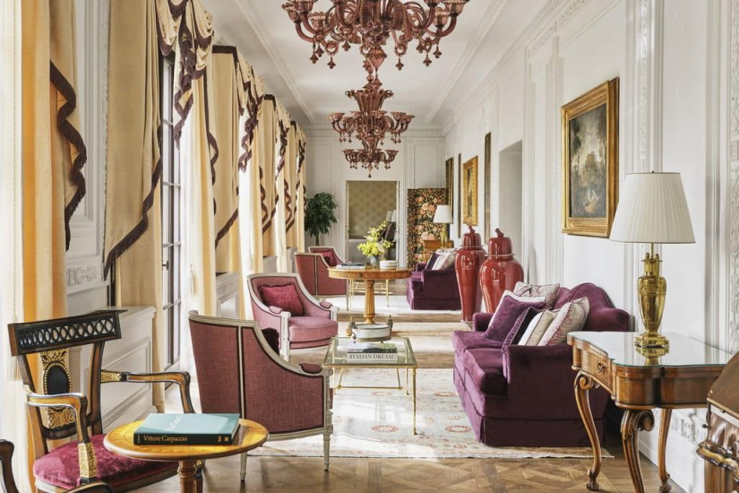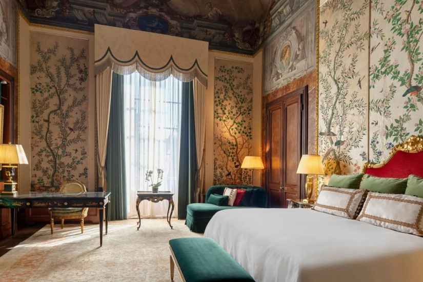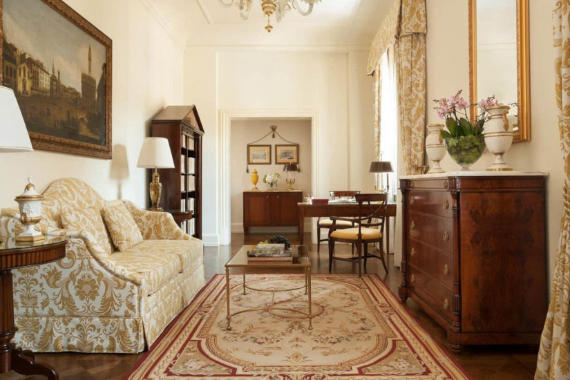 - 234 м2. Роскошный номер с уникальным историческим интерьером в дворцовом стиле, украшен фресками XVII века, напольной керамической плиткой Capodimonte и подлинными произведениями искусства, состоит из холла, спальни с кроватью king-size с пологом, гостиных, кабинета, столовой с обеденной зоной на 8 персон, большой ванной комнаты с отделкой из мрамора, ванной и душем, гостевой туалетной комнаты. Номер расположен на главном этаже в палаццо Della Gherardesca. Максимальное размещение – 3 взрослых. Возможно присоединение дополнительных спален.