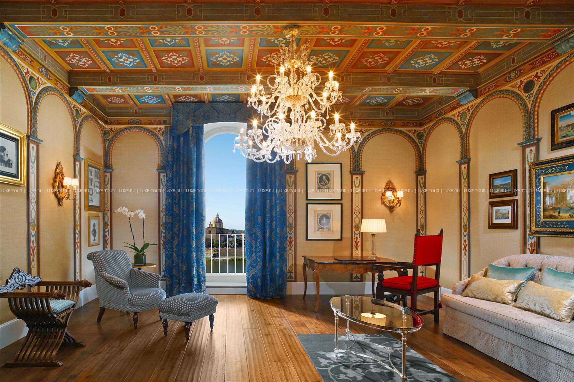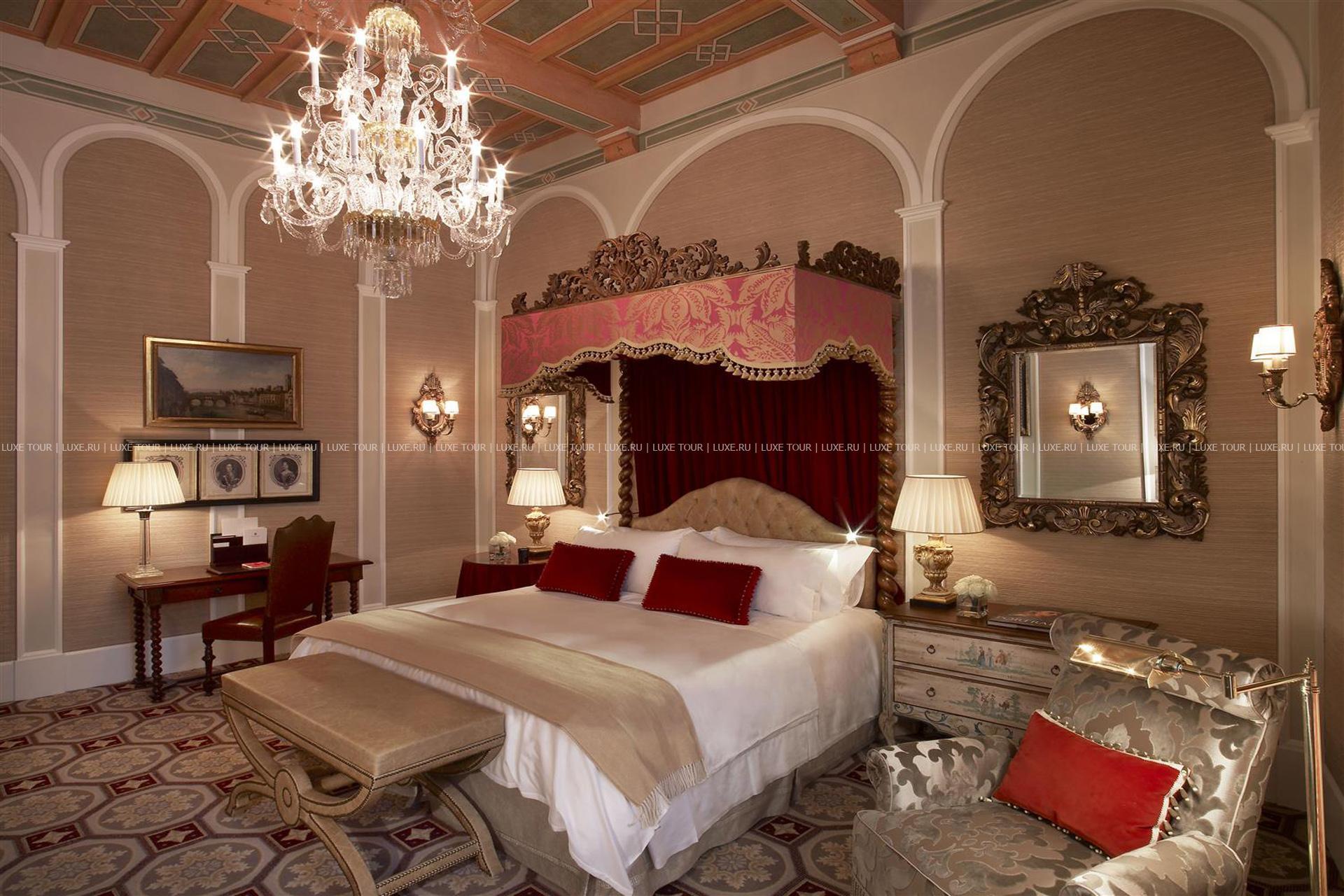 На берегу живописной реки Арно, в историческом центре Флоренции расположен The St. Regis Florence, занимающий великолепный дворец, который был построен в начале XV века по проекту знаменитого флорентийского архитектора Брунеллески. Изначально дворец принадлежал богатой аристократической семье Джиунтини, затем здесь был открыт Гранд-отель Royal de la Paix, а сегодня своих гостей приглашает фешенебельный The St. Regis Florence. Изысканная роскошь дворца XV века царит во всем отеле — от комфортабельных номеров, украшенных уникальными фресками и антикварными произведениями искусства, до изысканного ресторана, элегантного бара и залов для деловых встреч и торжеств. К услугам гостей также Spa и фитнес-центры. The St. Regis Florence сочетает неповторимое очарование Флоренции эпохи Возрождения и первоклассный сервис XX века.