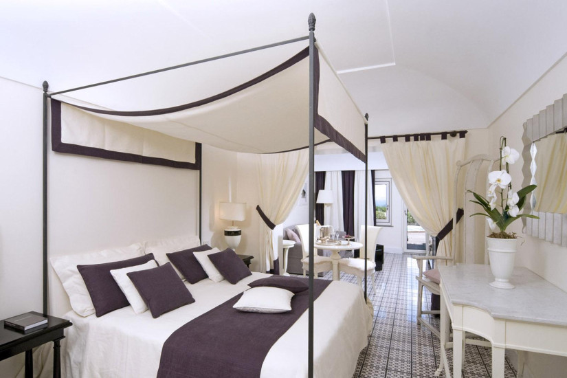 - В отеле 57 номеров, включая Classic Single Room, Superior Single Room, Classic Double Room, Standard Double Room, Superior Double Room, Deluxe Double Room, Park Junior Suite, Tower Junior Suite, Deluxe Suites, Deluxe Bungalow Family Suite. Интерьеры сочетают изящный средиземноморский стиль и элегантный современный дизайн: светлые тона с акцентами ярких красок, драпировки из изысканных тканей, тщательно подобранные элементы декора создают неповторимую атмосферу легкости и уюта. Из номеров открывается изумительный вид на лазурное море, живописный парк и виднеющиеся вдали Везувий и склоны Эмпео.