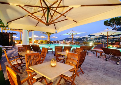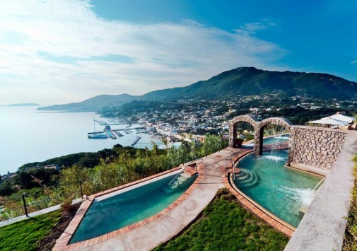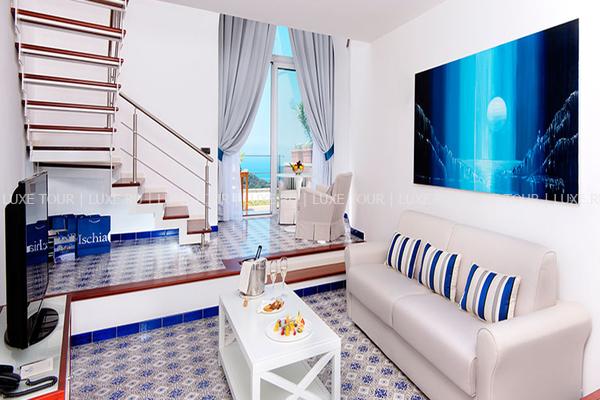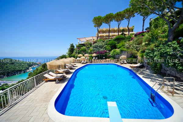 Отель расположен на острове Искья. С холма, на котором расположился отель, открывается вид на море, остроконечное побережье острова, Неаполь, вулкан Везувий и полуостров Sorrentine — на востоке; пышные зеленые склоны и холмы — на юге и на западе; побережье Flegrea — на севере. Здание отеля стоит посреди роскошного парка, в котором расположились два открытых плавательных бассейна, теннисный корт, боулинг и частная парковка для автомобилей. Недалеко от бассейна находится естественная сауна в скальном гроте.