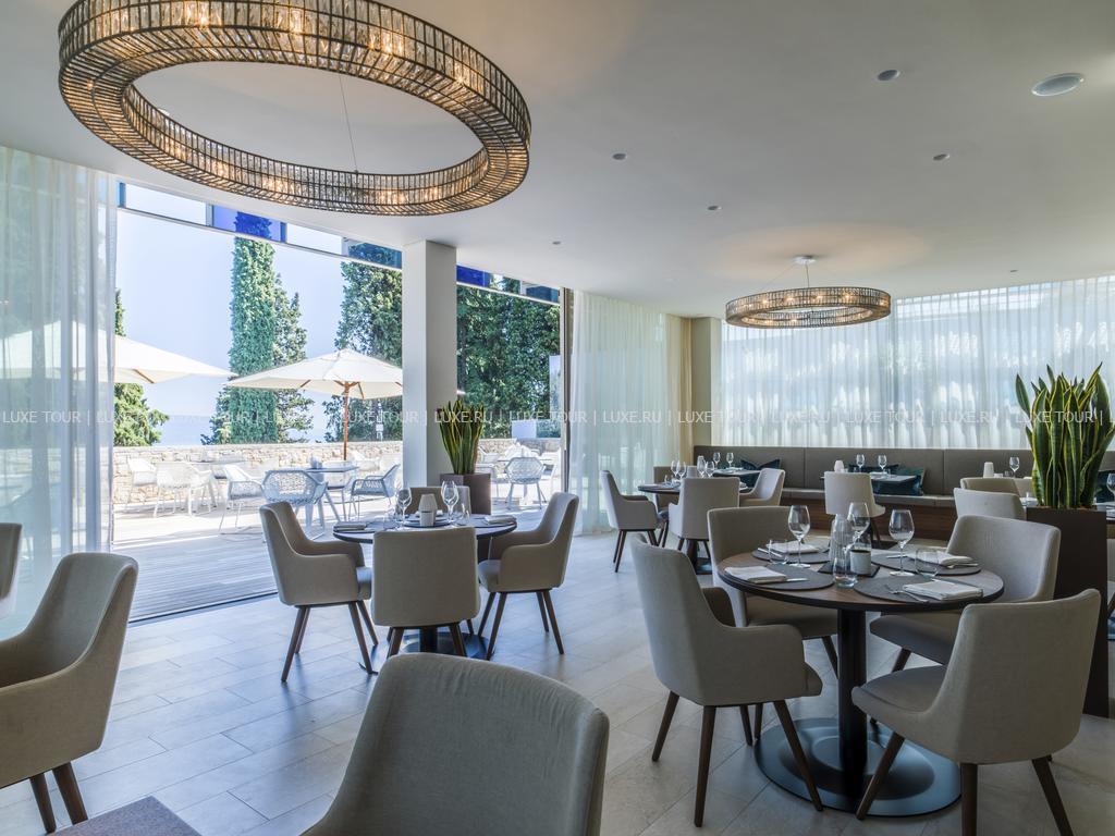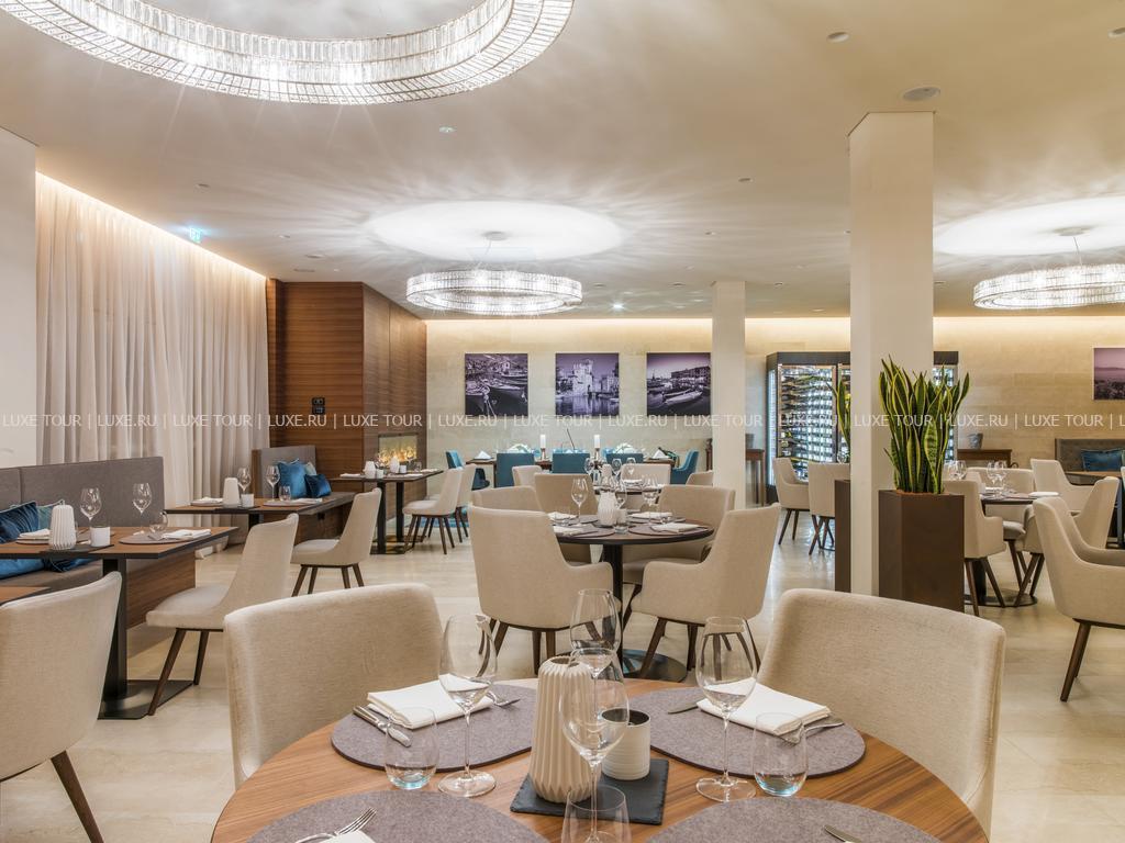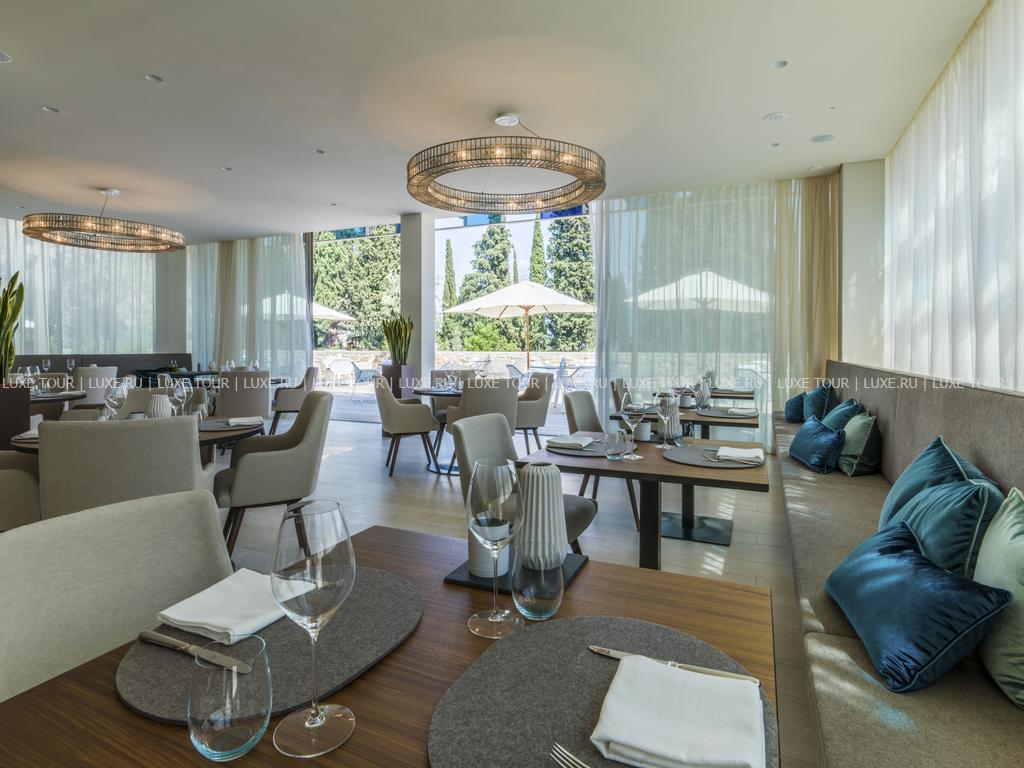 Элегантный ресторан с солнечной террасой предлагает деликатесы региональной кухни, приготовленные из отборных местных продуктов. В уютном лаундж-баре можно отдохнуть за напитком, любуясь прекрасным видом на озеро Гарда.